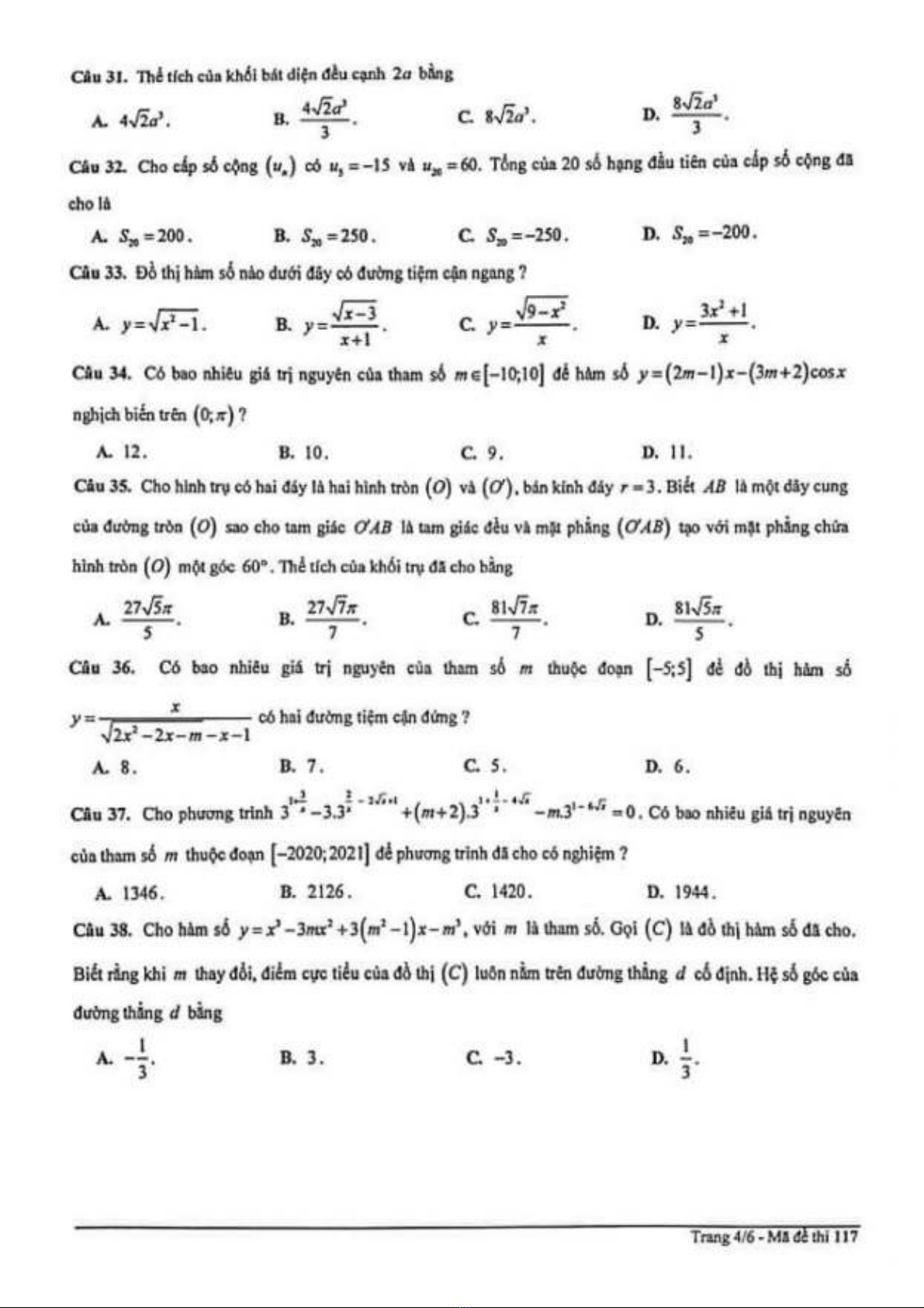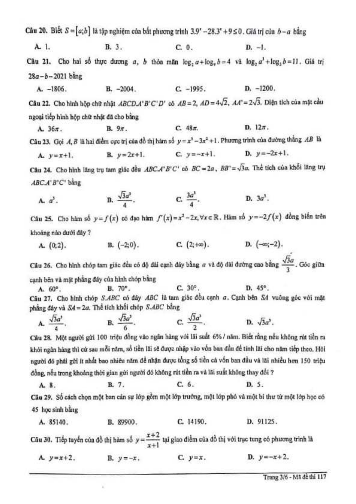 Đề thi chính thức tốt nghiệp THPT năm 2025 môn Toán có đáp án