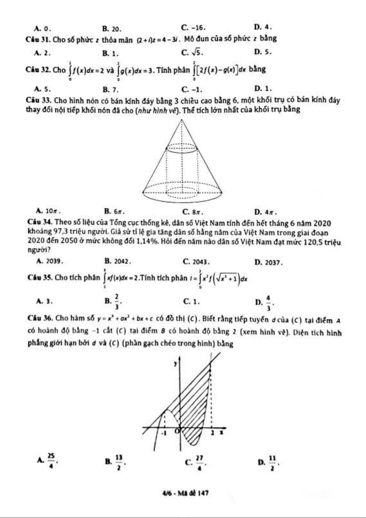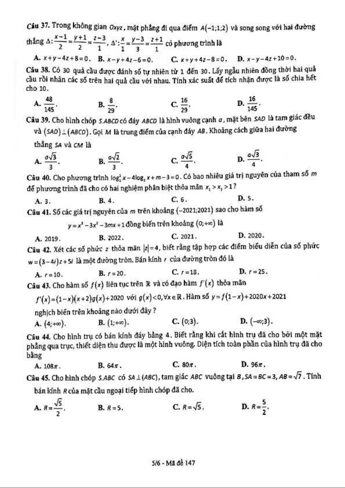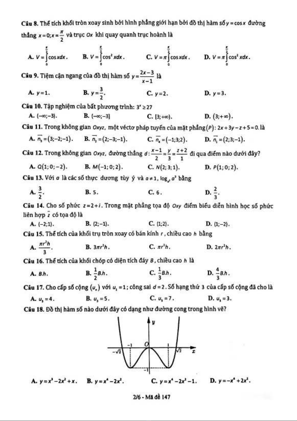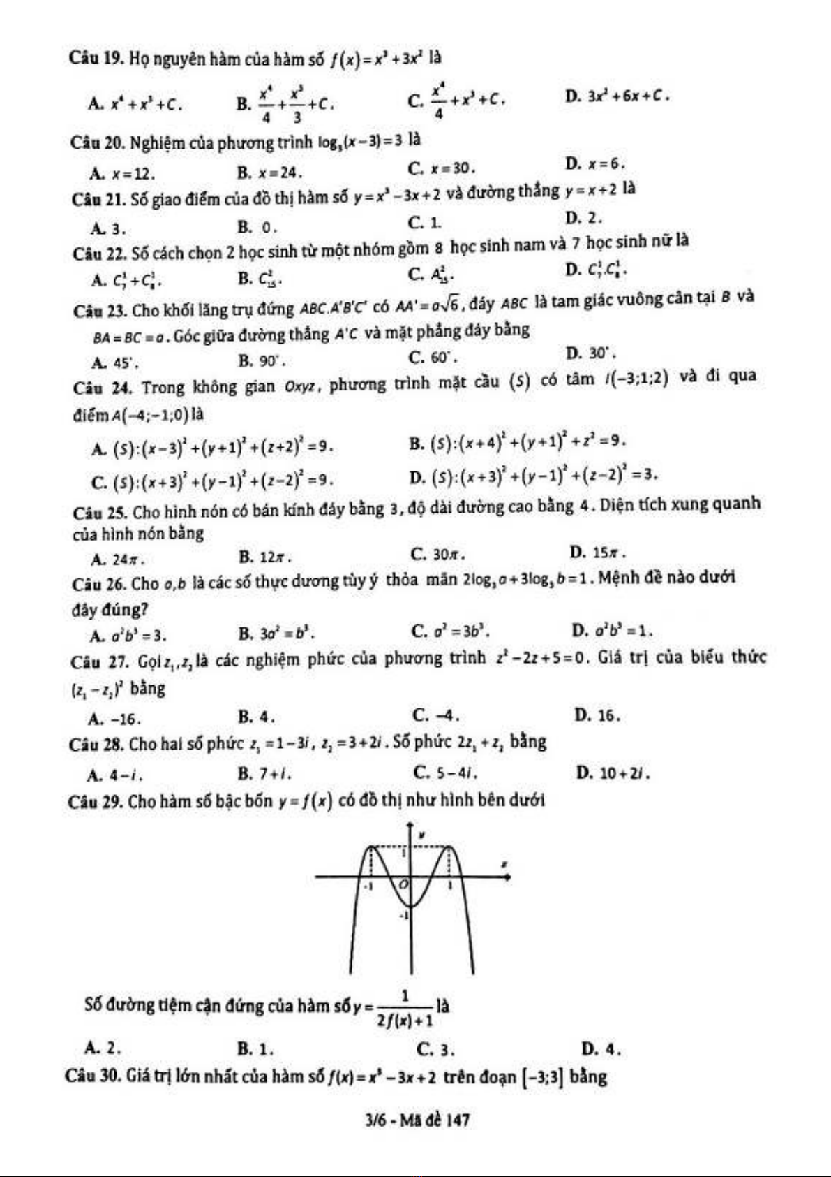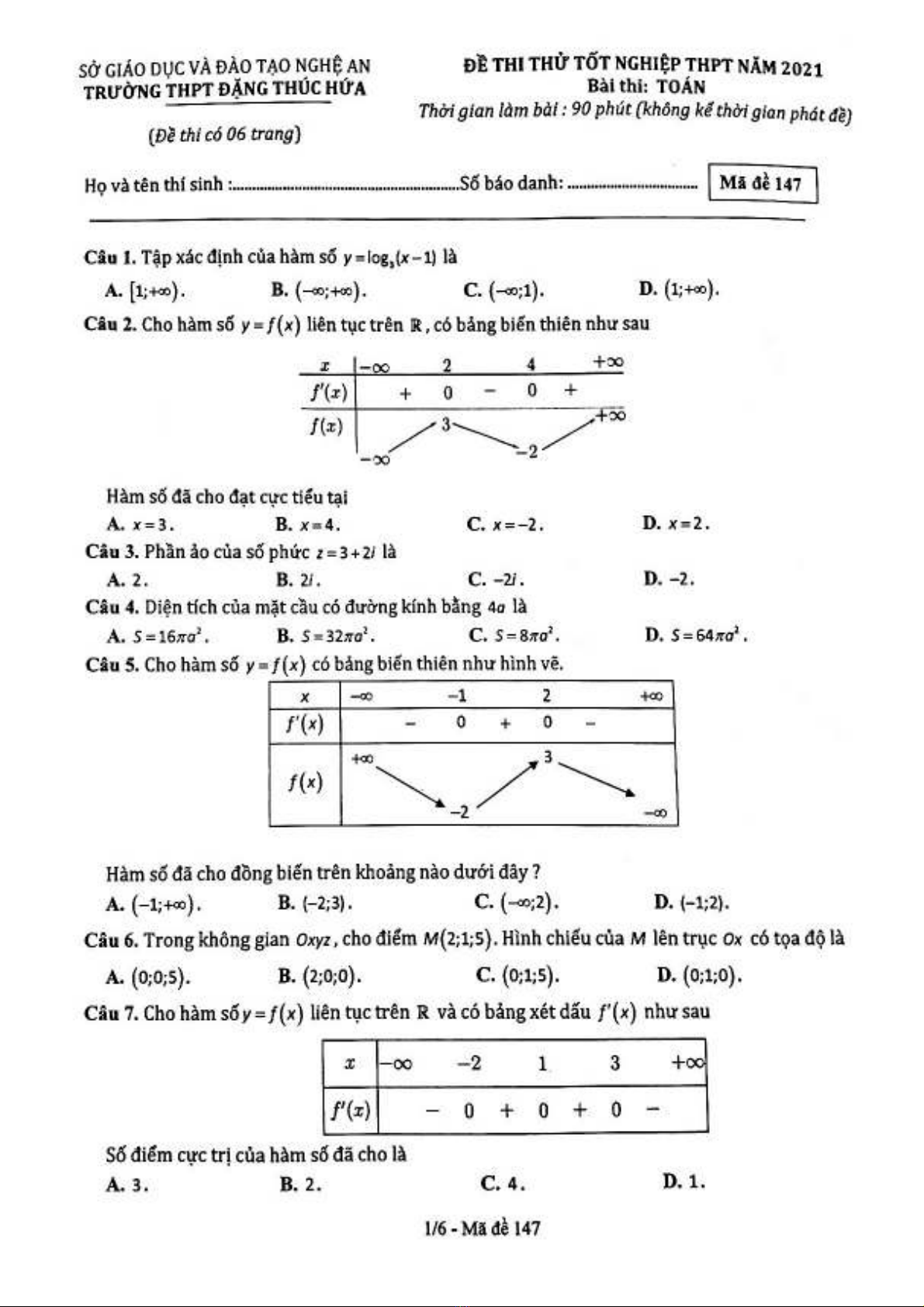 Đề thi thử tốt nghiệp THPT năm 2021 môn Toán - Trường THPT Đặng Thúc Hứa