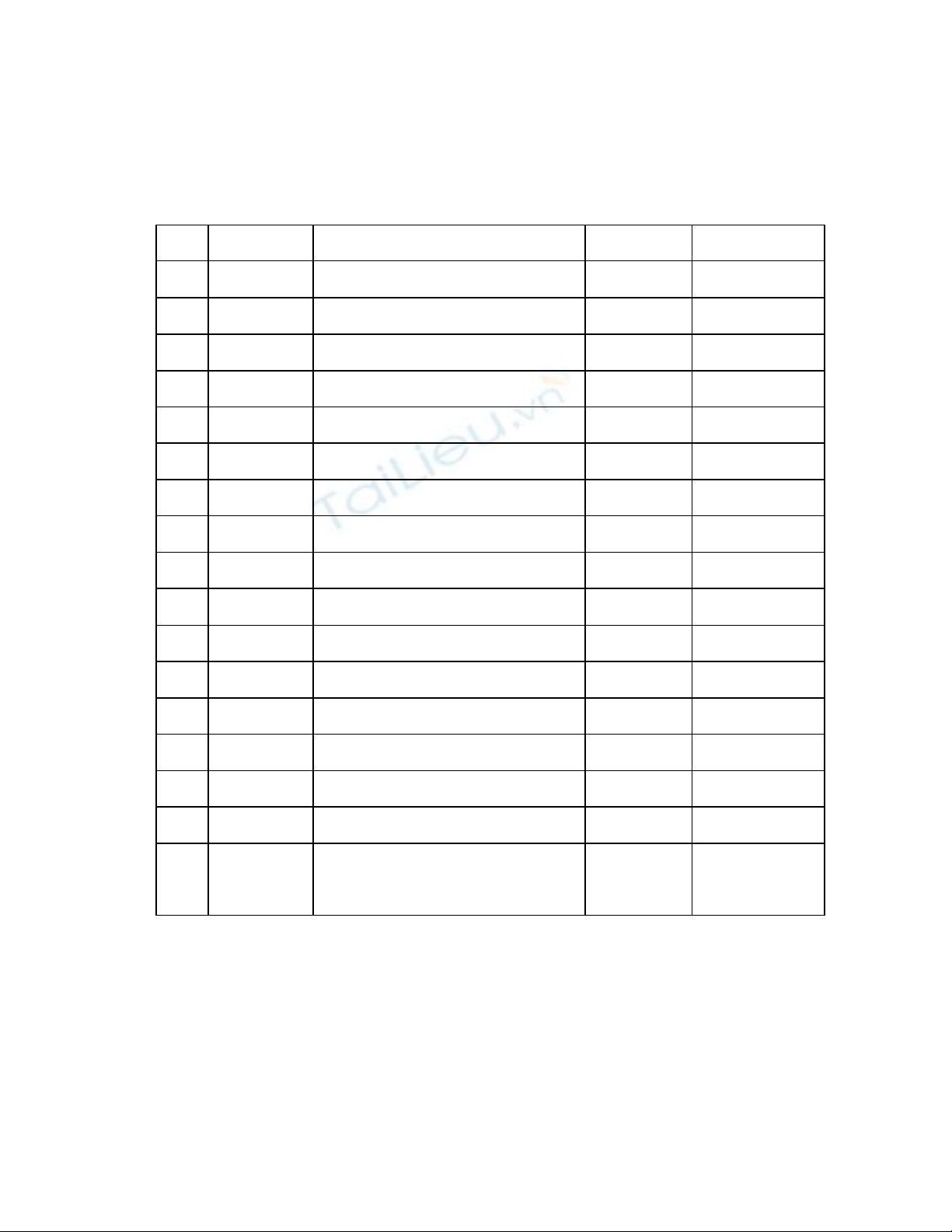 TT Số lượng Danh mục Mô tả Ghi chú