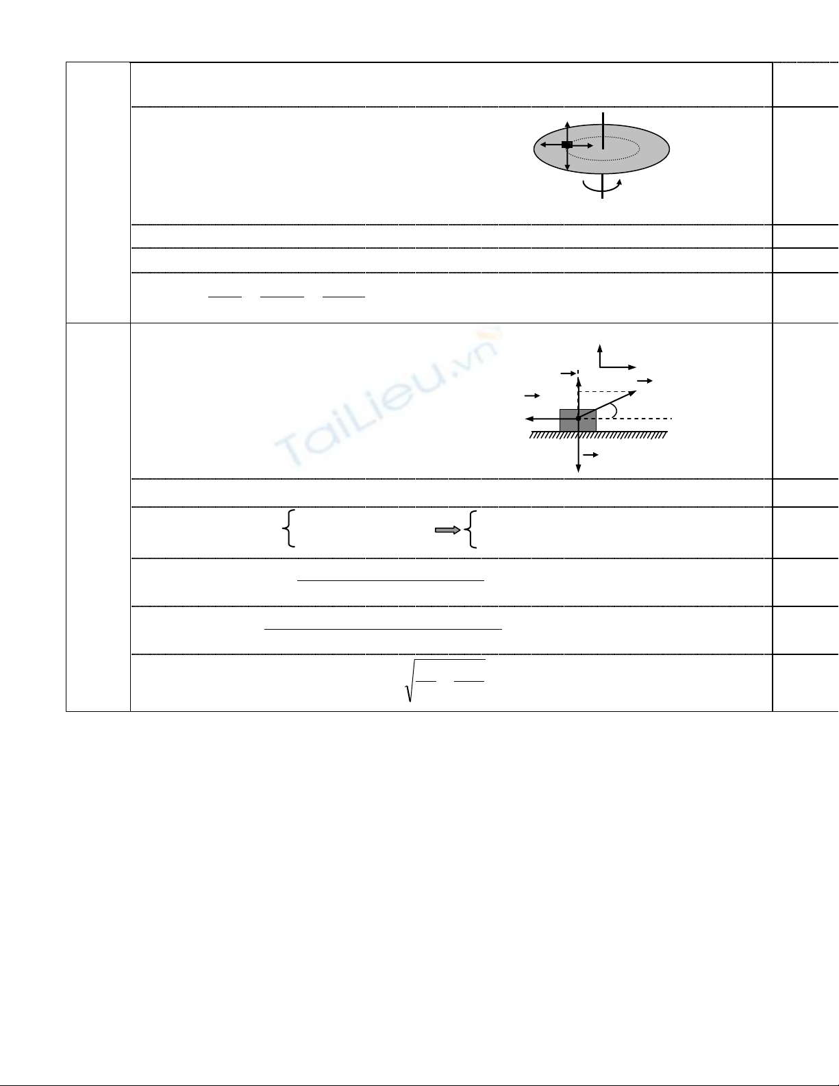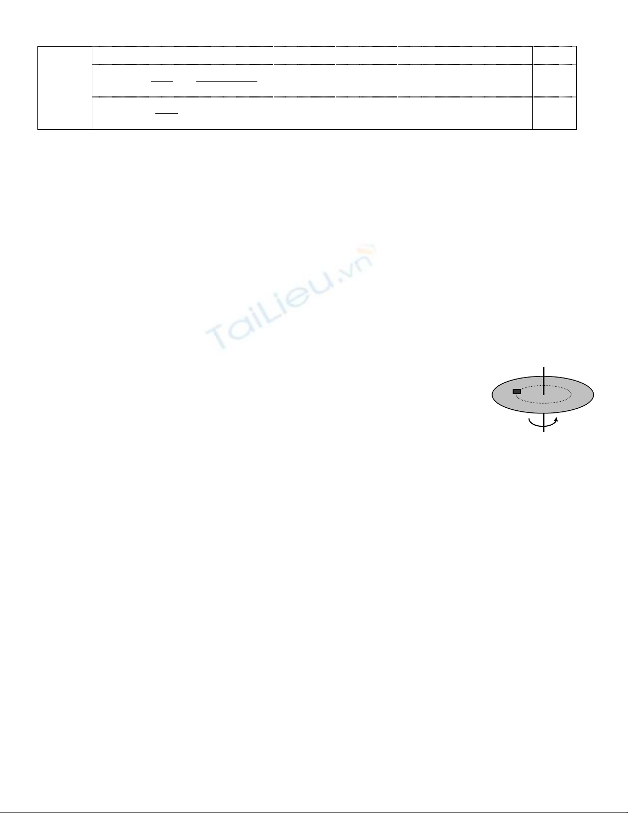 Câu 3 (2,5đ): Một chiếc bàn tròn bán kính 35cm, quay quanh trục thẳng đứng với vận tốc góc
