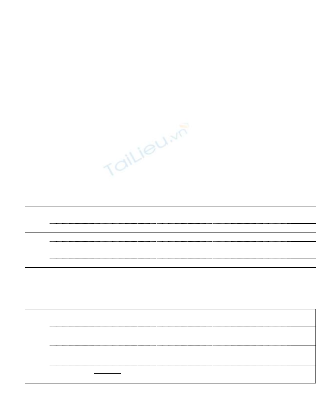 mức quán tính của vật (Mỗi ý 0,25đ)