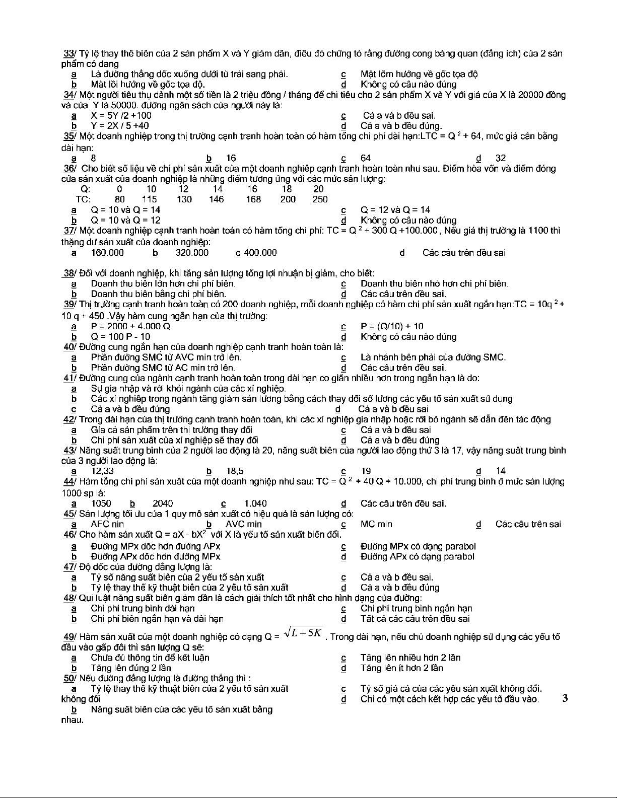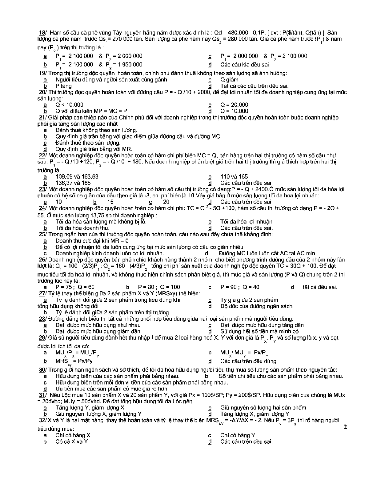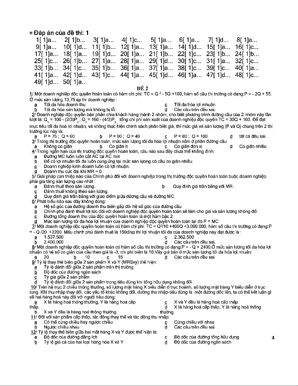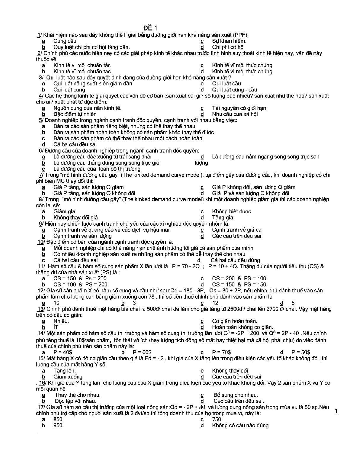 16 đề thi trắc nghiệm Kinh tế vi mô
