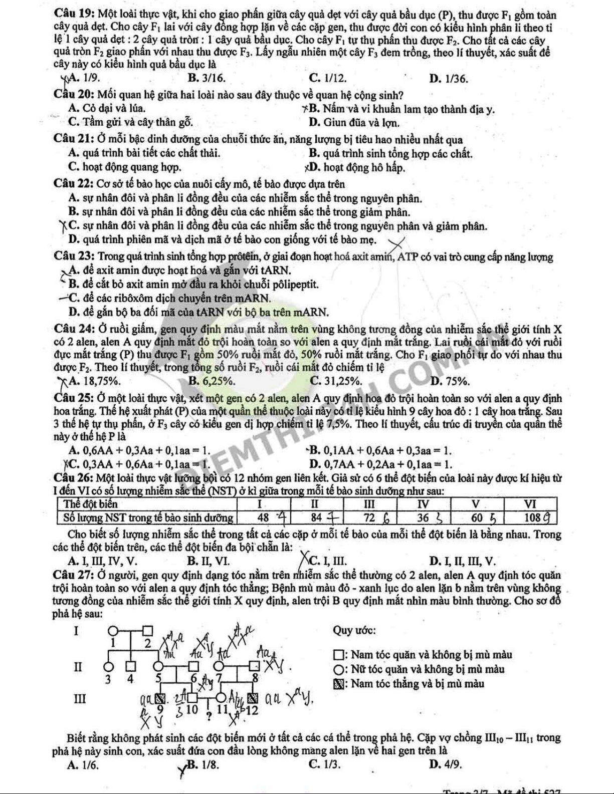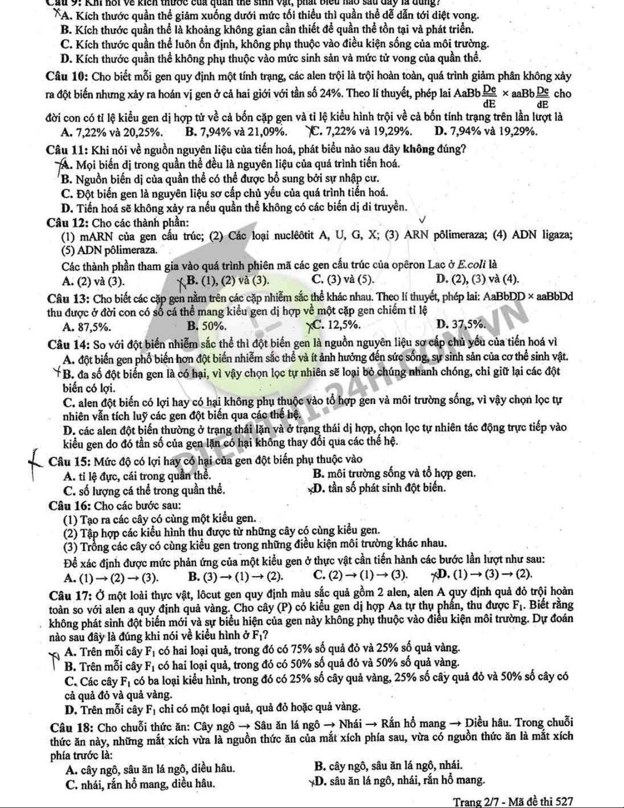 Đề thi tuyển sinh Đại học 2013 môn Sinh khối B - Mã đề 527