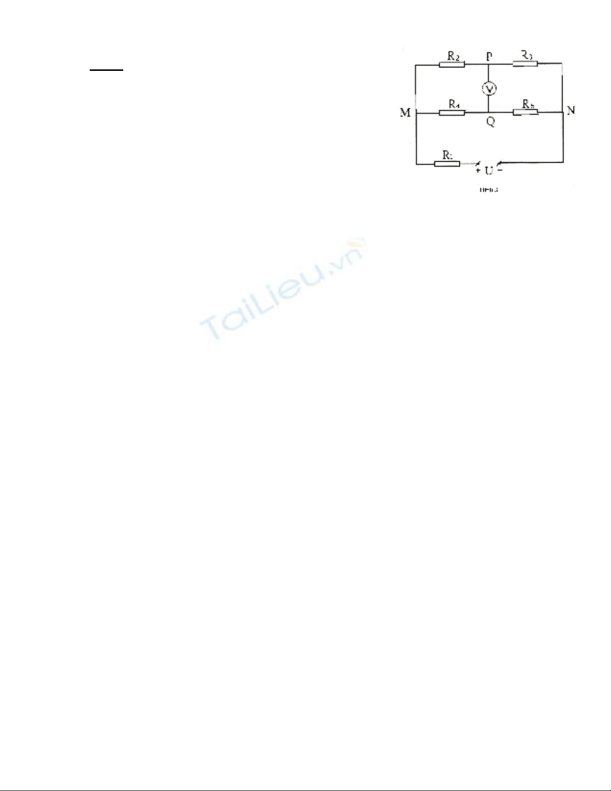 Câu 5. Cho mạch ñiện như hình 3: U = 60V, R