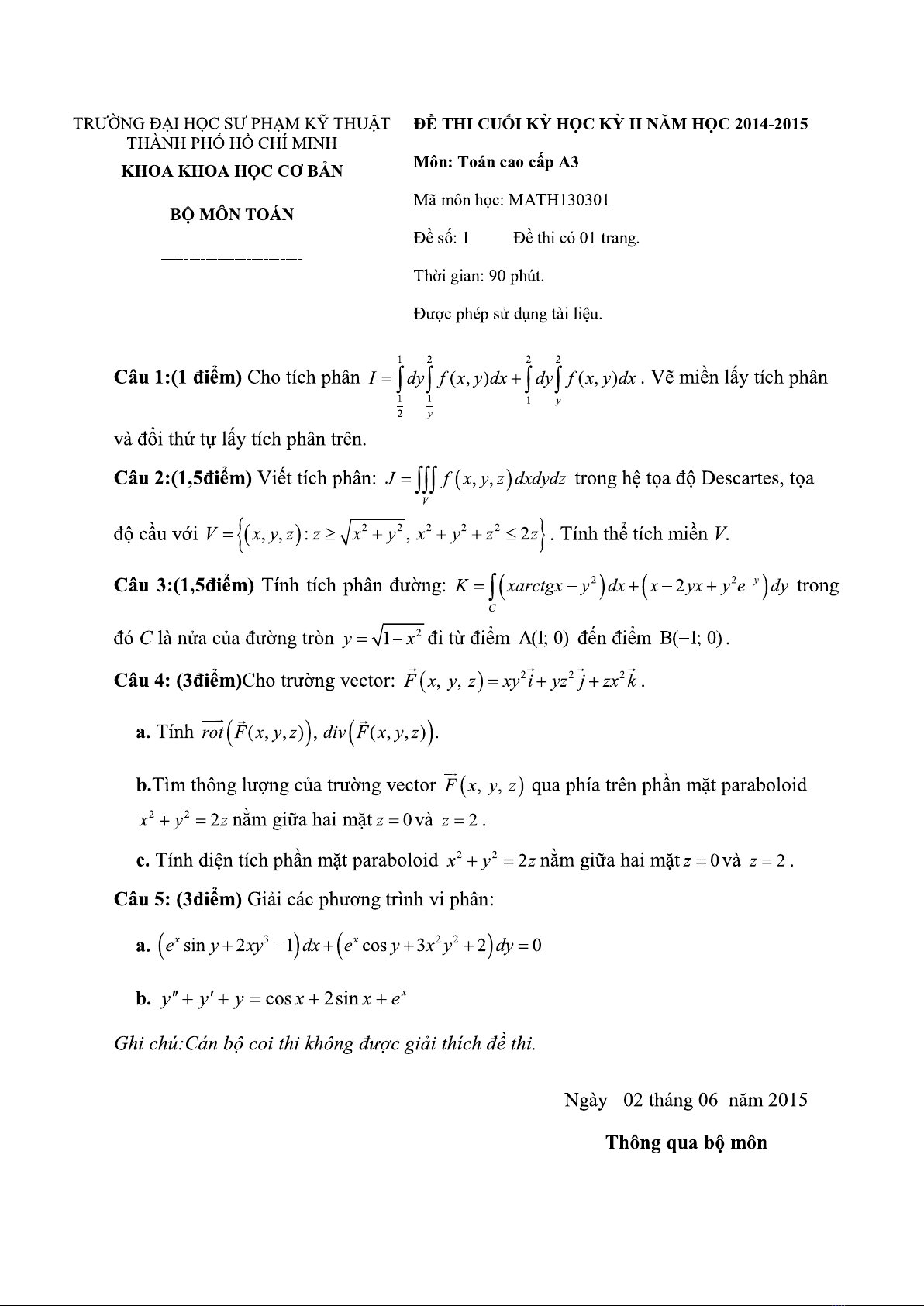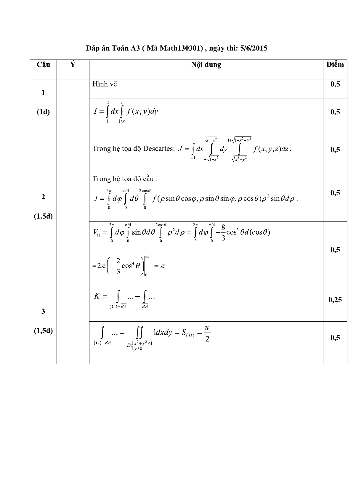 Đề thi và đáp án môn: Toán cao cấp A3