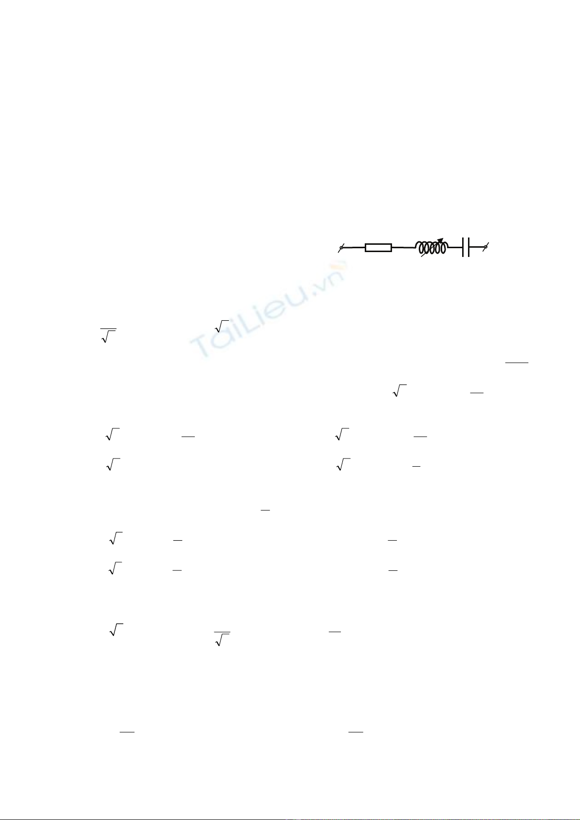 Câu 4: Cho mạch điện xoay chiều gồm điện trở thuần R, cuộn dây thuần cảm L và tụ điện F