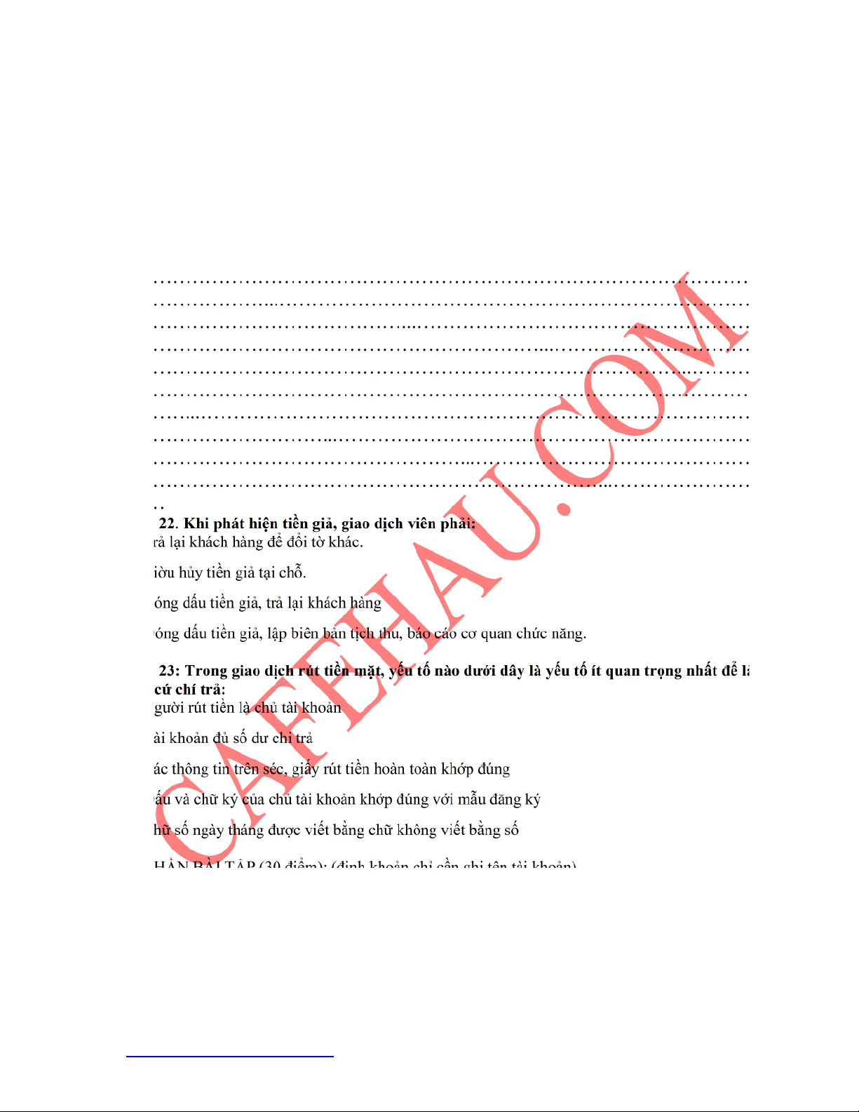 Câu 22.Khi phát hiện tiền giả, giao dịch viên phải: