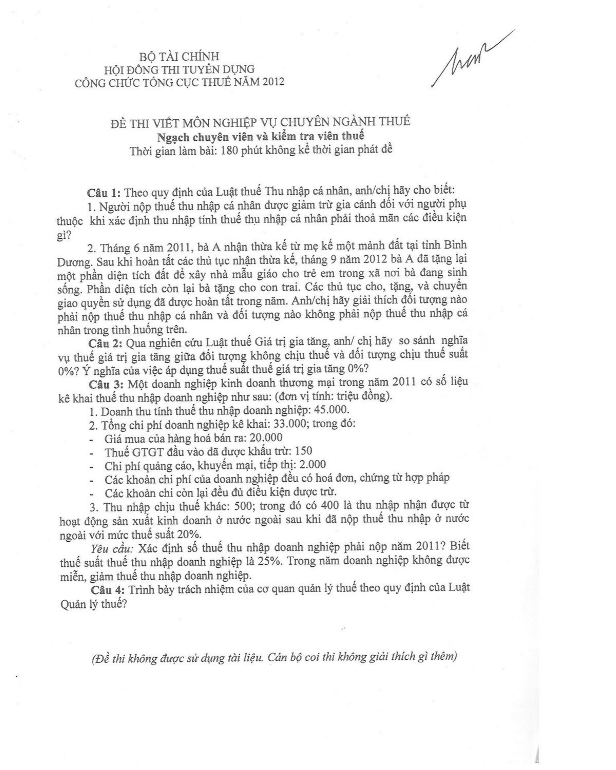 .Đề thi viết môn nghiệp vụ chuyên ngành thuế