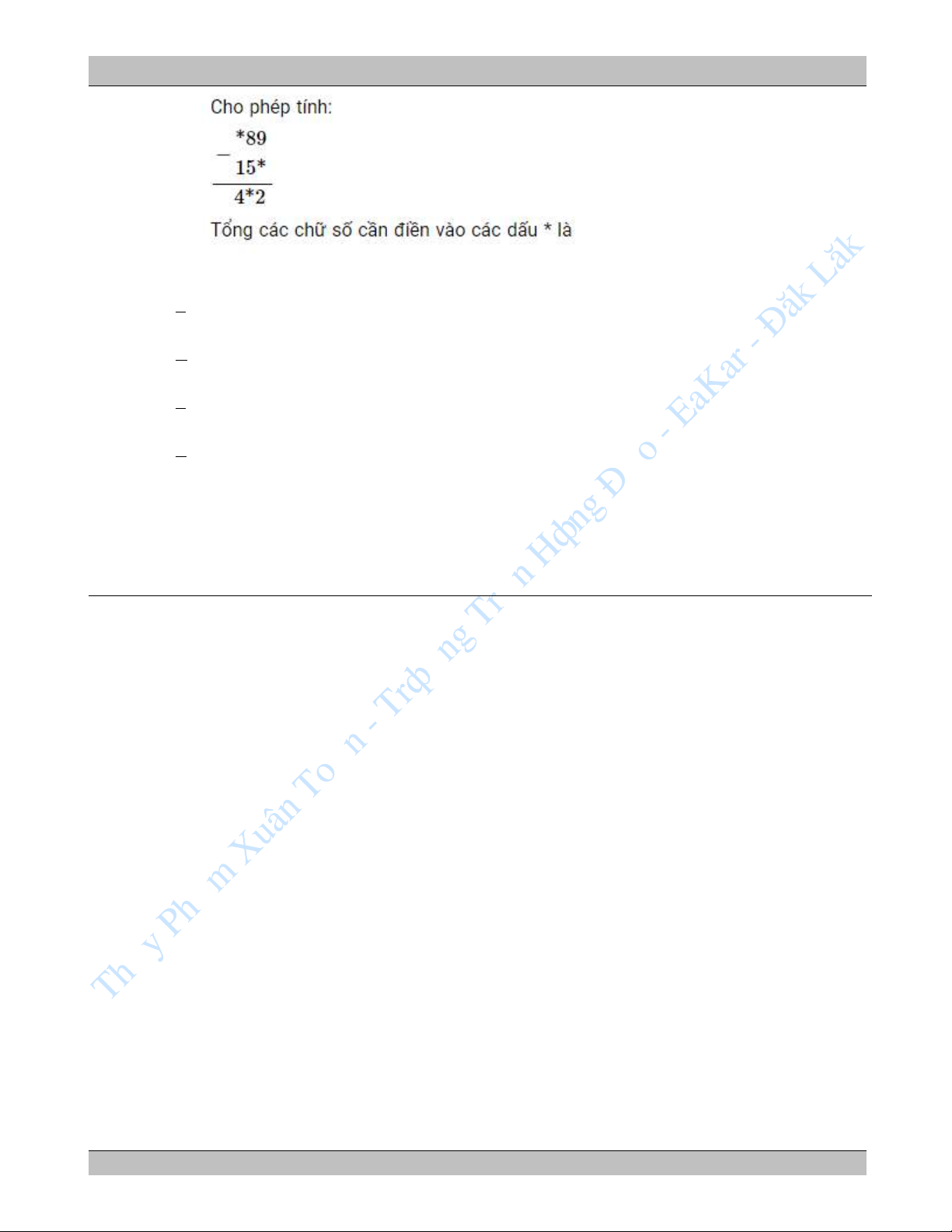 Câu 6: M t phép tr có s b tr là s l n nh t có 3 ch s khác nhau mà t ng các ộ ừ ố ị ừ ố ớ ấ ữ ố ổ