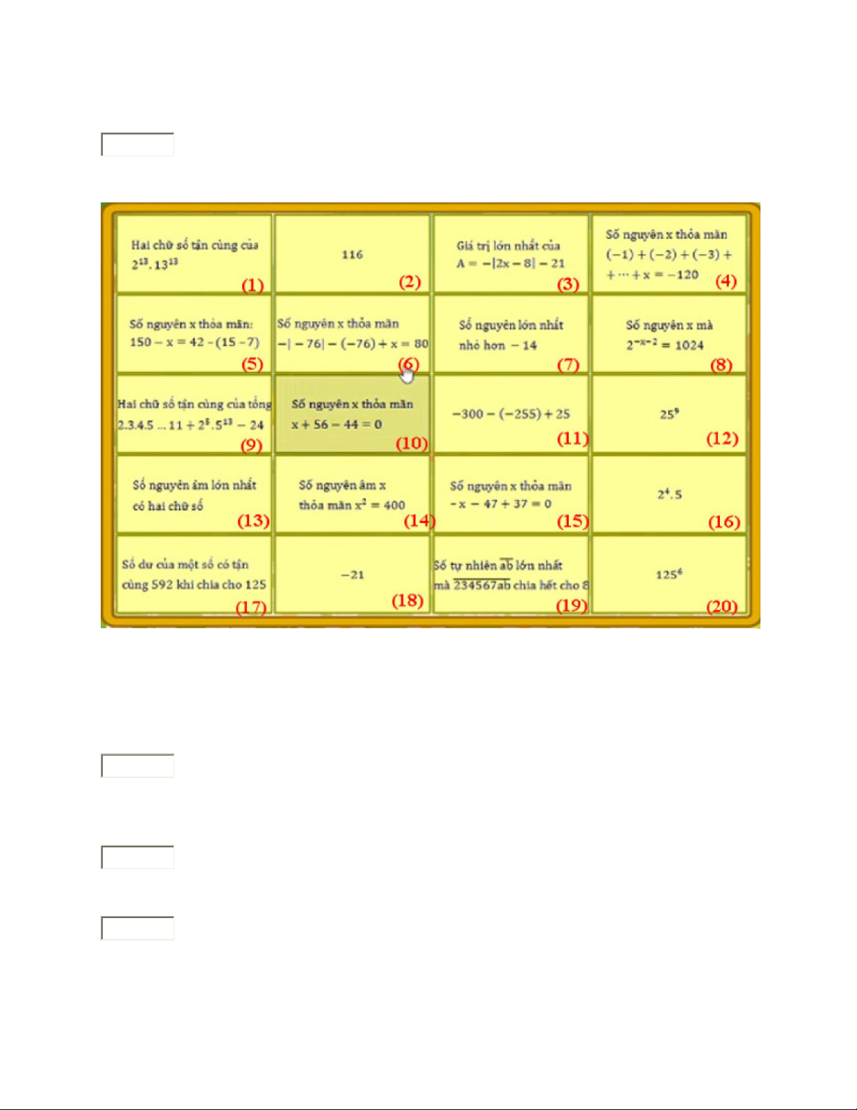 Câu 3.3: Số các giá trị nguyên của x thỏa mãn -5 < x < 3 là: ................