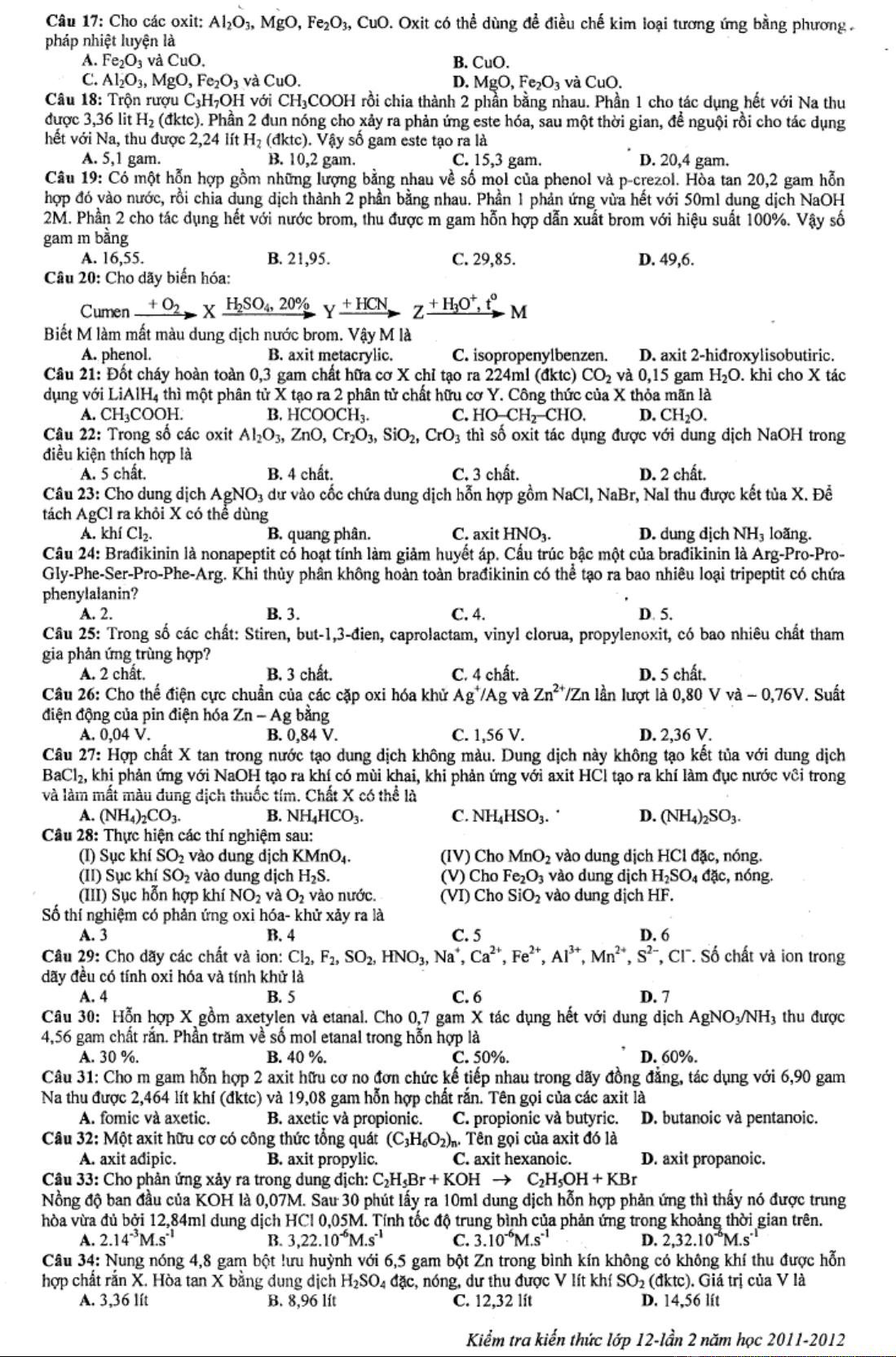 Đề thi thử ĐH môn Hóa học - THPT chuyên Hà Tĩnh lần 1 (2011-2012) đề 357