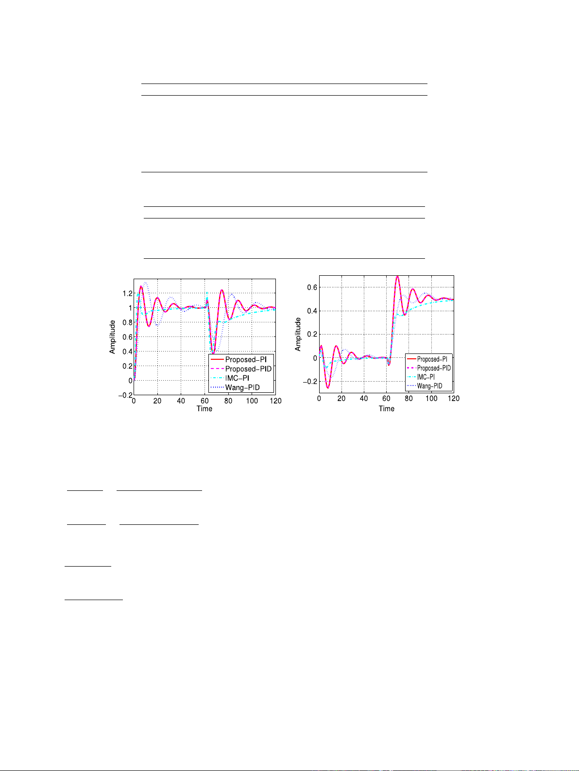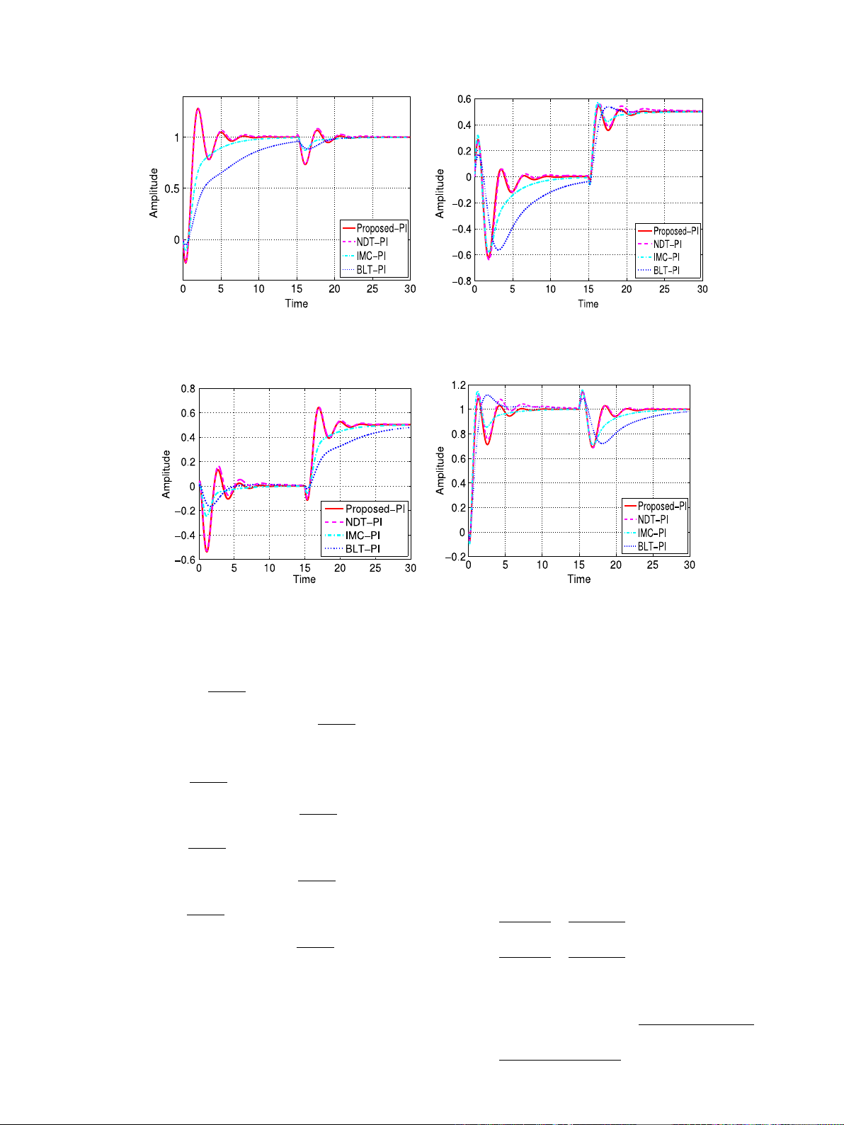 IMC-PI and BLT-PI controllers. The IAE of proposed-PI controller is