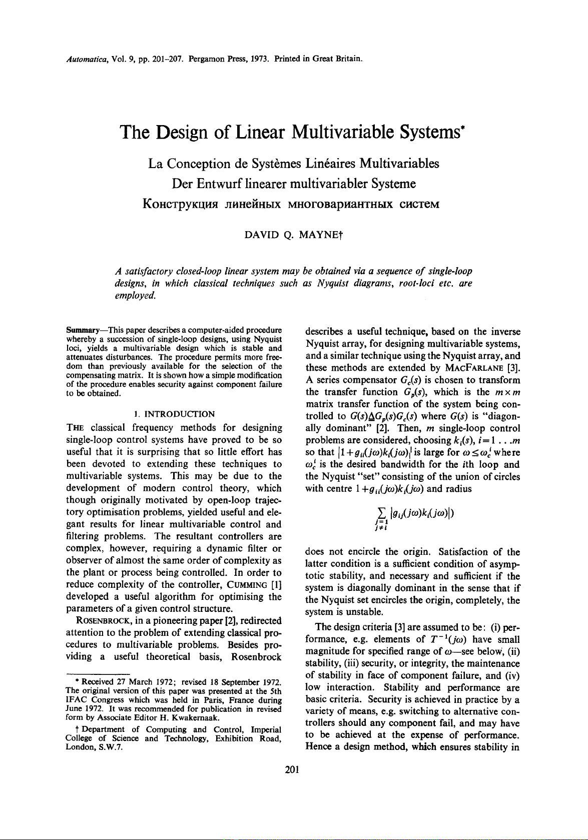 designs, in which classical techniques such as Nyquist diagrams, root-loci etc. are