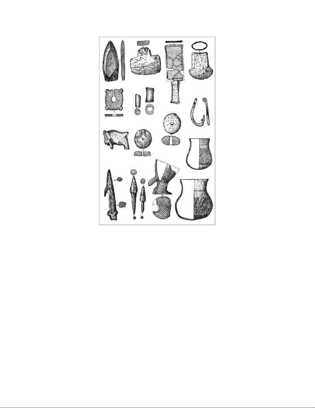 bát, chạc gốm, dọi xe sợi, bi gốm, v..v. Chân đế bình,