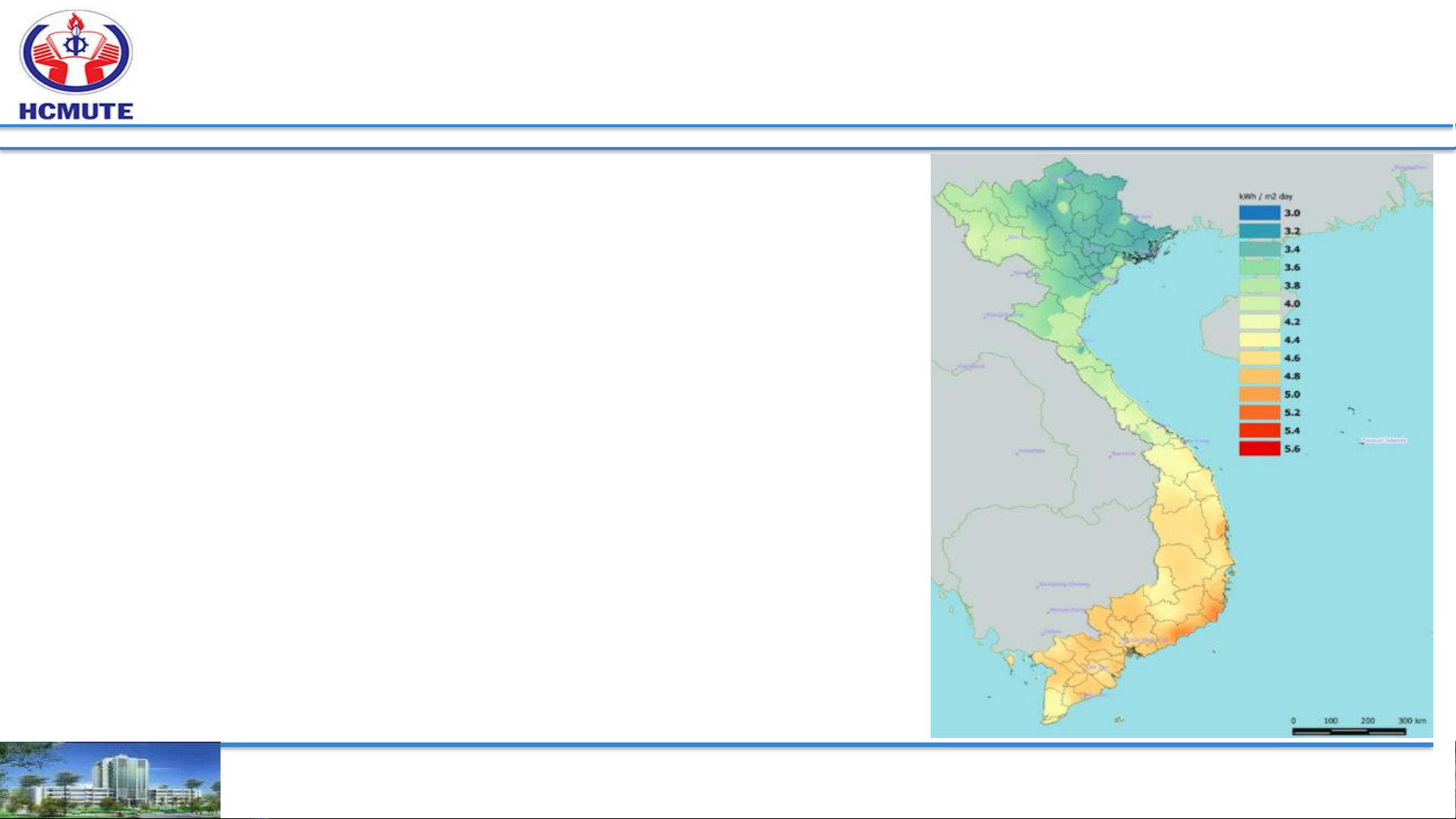 3,69 kWh/m2 và phía nam là 5,9 kWh/m2. Lượng bức