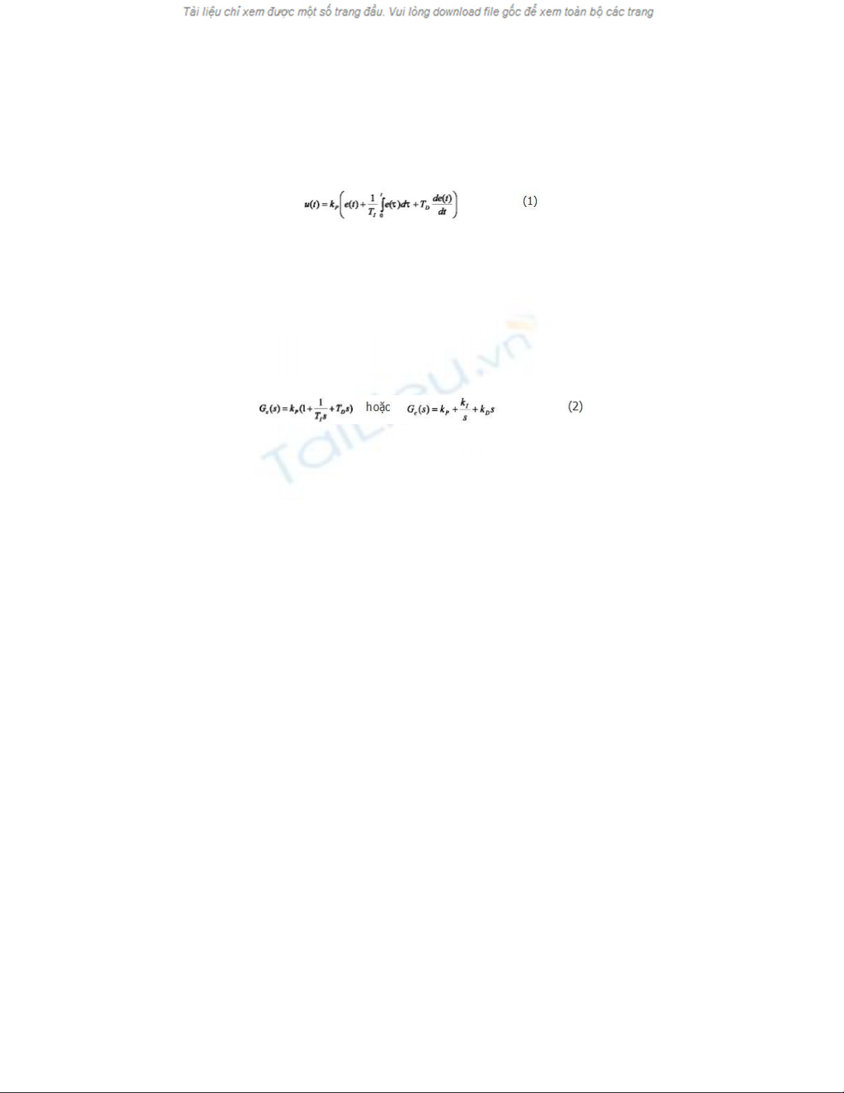 trong đó: e(t) là tín hiệu đầu vào (sai lệch điều khiển), u(t) là tín hiệu đầu ra