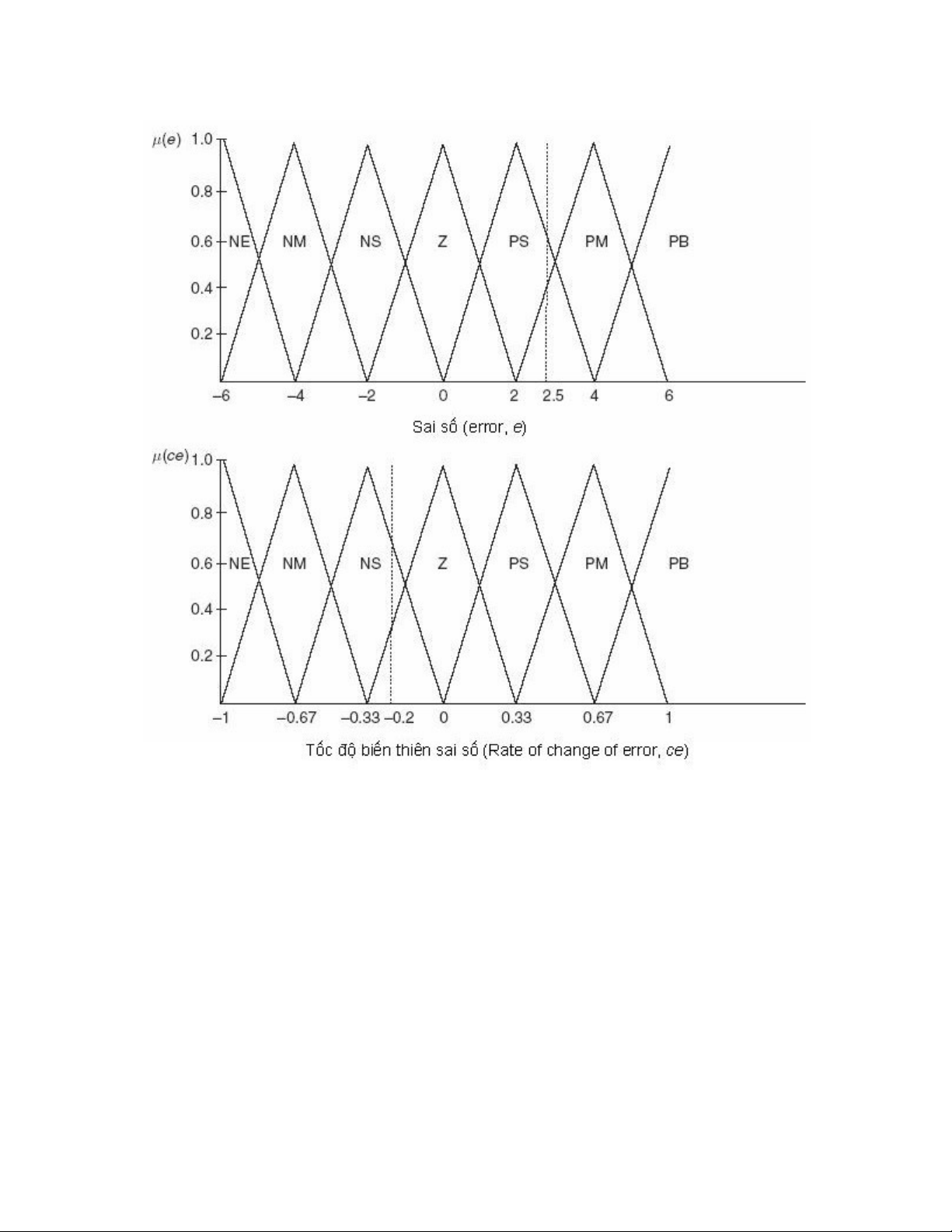 Không (Z, about zero), NS (âm nh , negative small), NM (âm trung bình, negativeỏ
