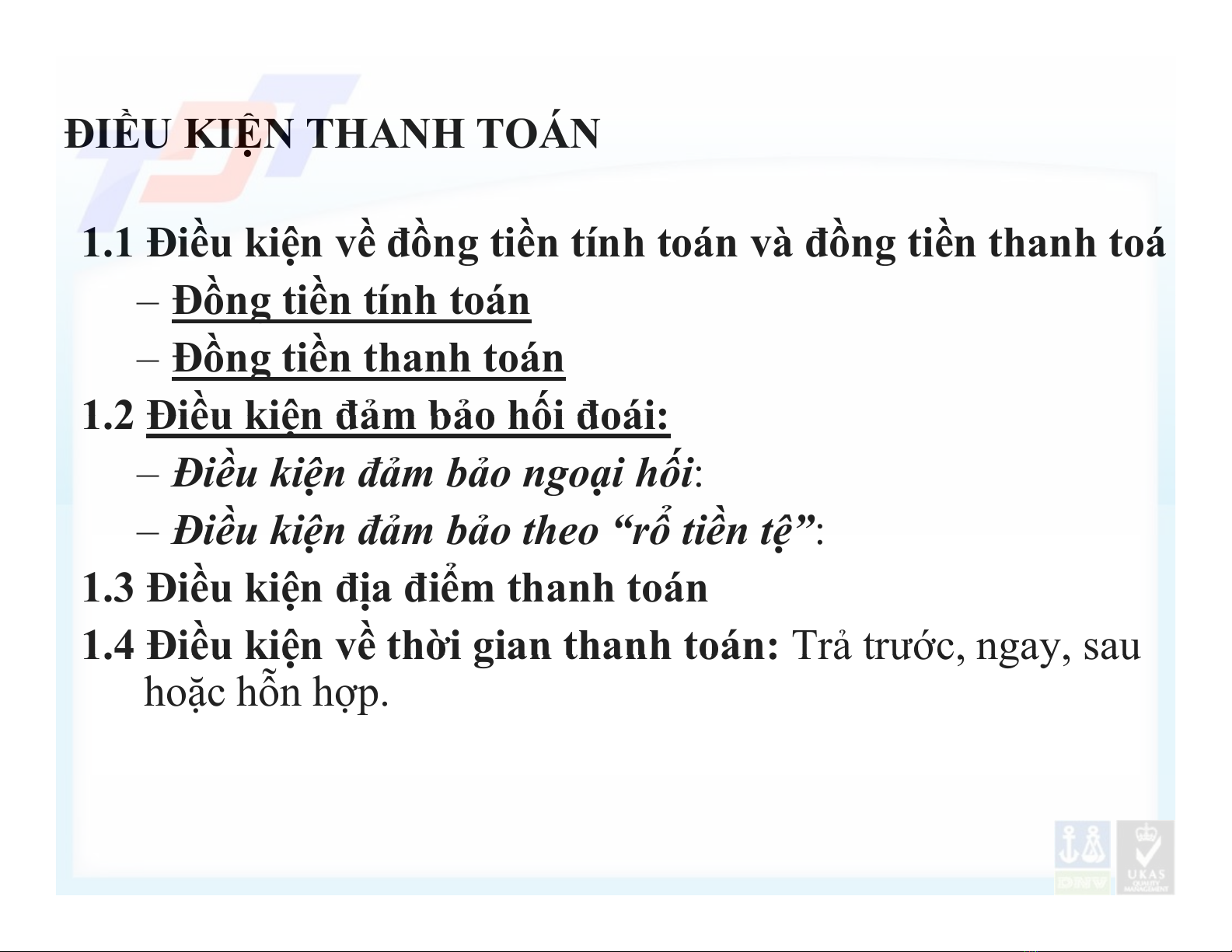 1.1 Điều kiện về đồng tiền tính toán và đồng tiền thanh toán