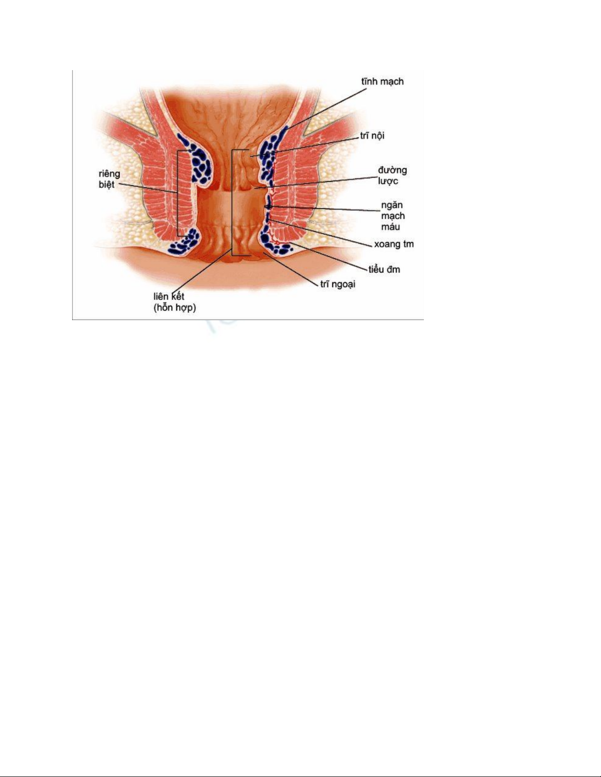 dưới da (trĩ ngoại). Bệnh nhân bị bệnh trĩ sẽ có những bất thường ở tổ chức này: cương tụ, giãn