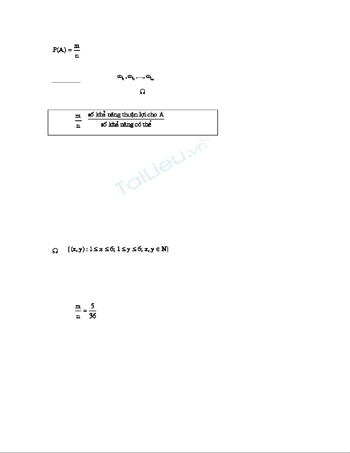 Nhận xét: m phần tử lập nên A được gọi là số khả năng thuận lợi