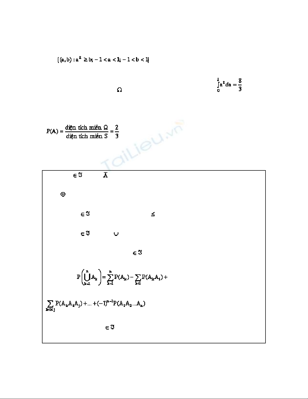 điểm của miền . Khi đó, nếu tập các biến cố thuận lợi cho A là miền S trong