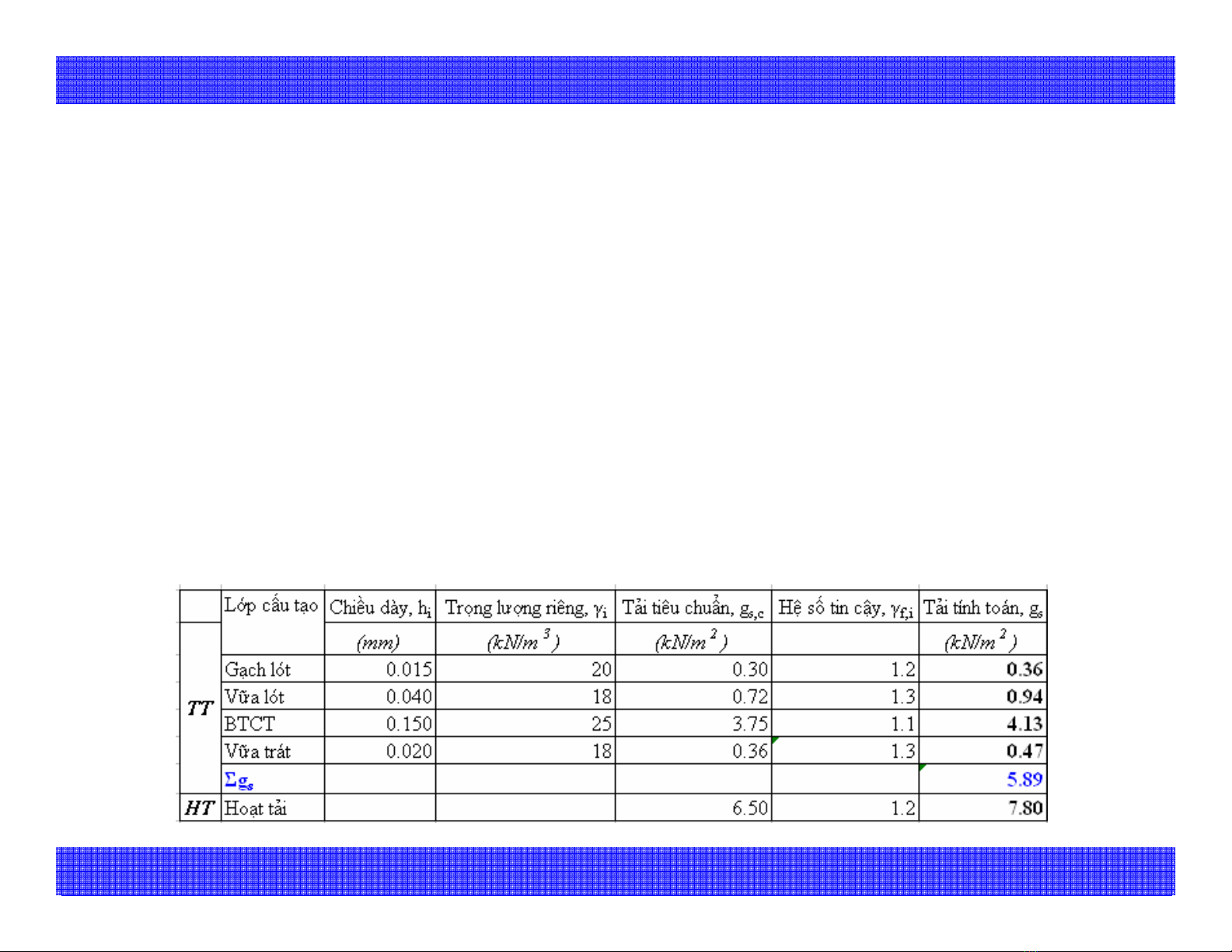 Bảng 3.1 –Tải trọng tác dụng lên sàn (ví dụ)