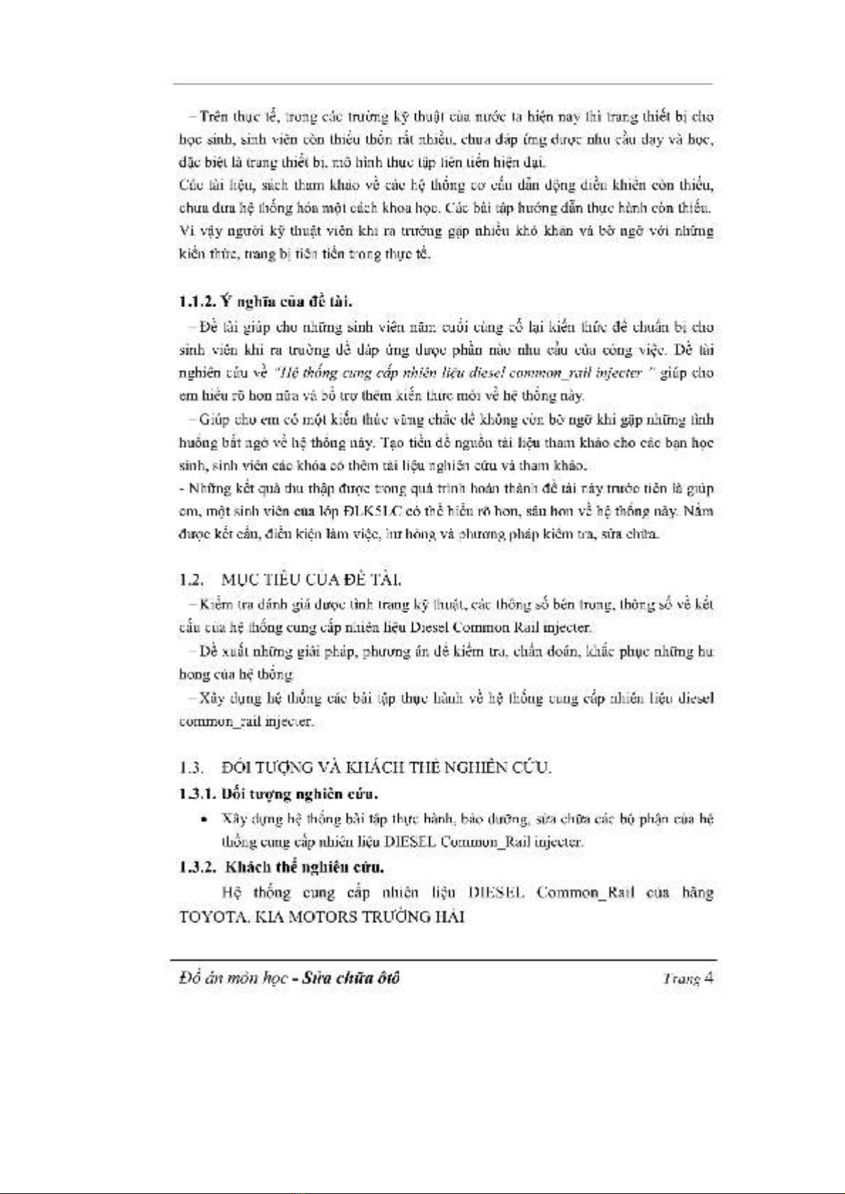 Đồ án môn học Sửa chữa ô tô: Hệ thống cung cấp nhiên liệu Diesel Common Rail injecter