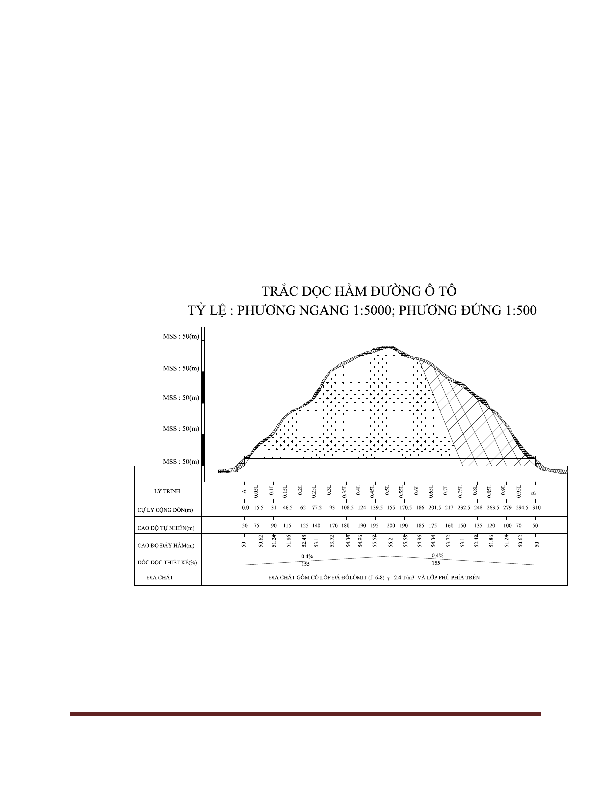 I,THIẾT KẾ TRẮC DỌC HẦM: