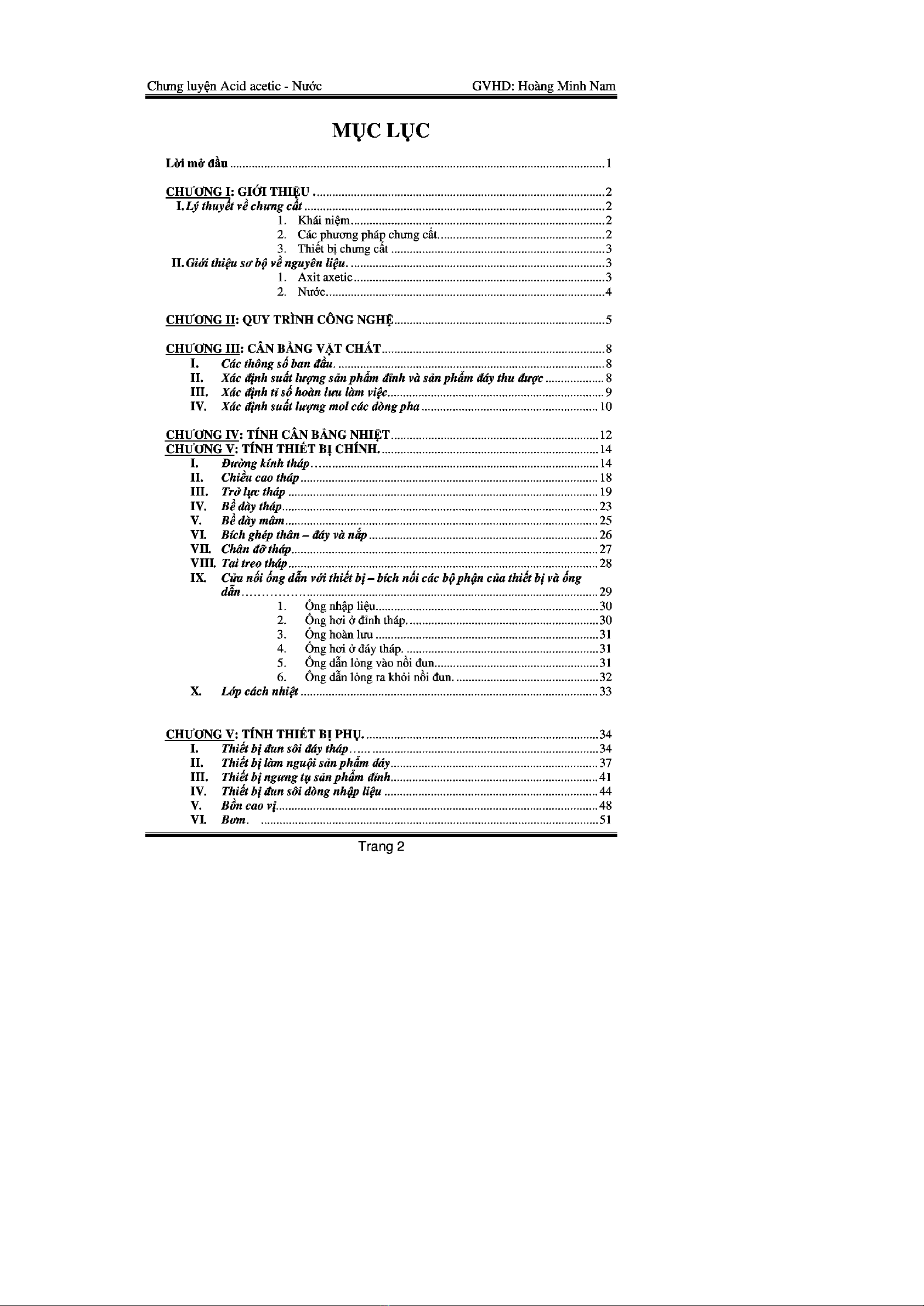 Đồ án: Thiết kế hệ thống chưng cất nước-axit axetic có năng suất là 500l/h