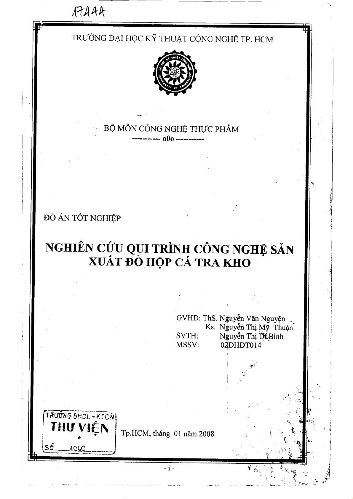 Đồ án tốt nghiệp: Nghiên cứu qui trình công nghệ sản xuất đồ hộp cá tra kho