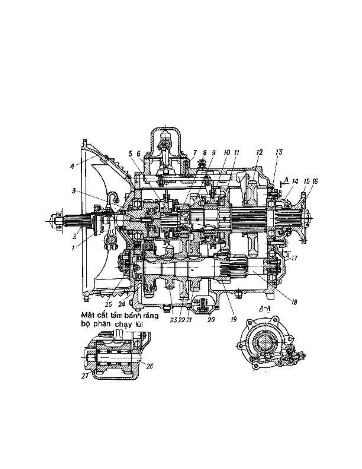 th c p, bánh răng trung gian và bánh răng s lùi.ứ ấ ố