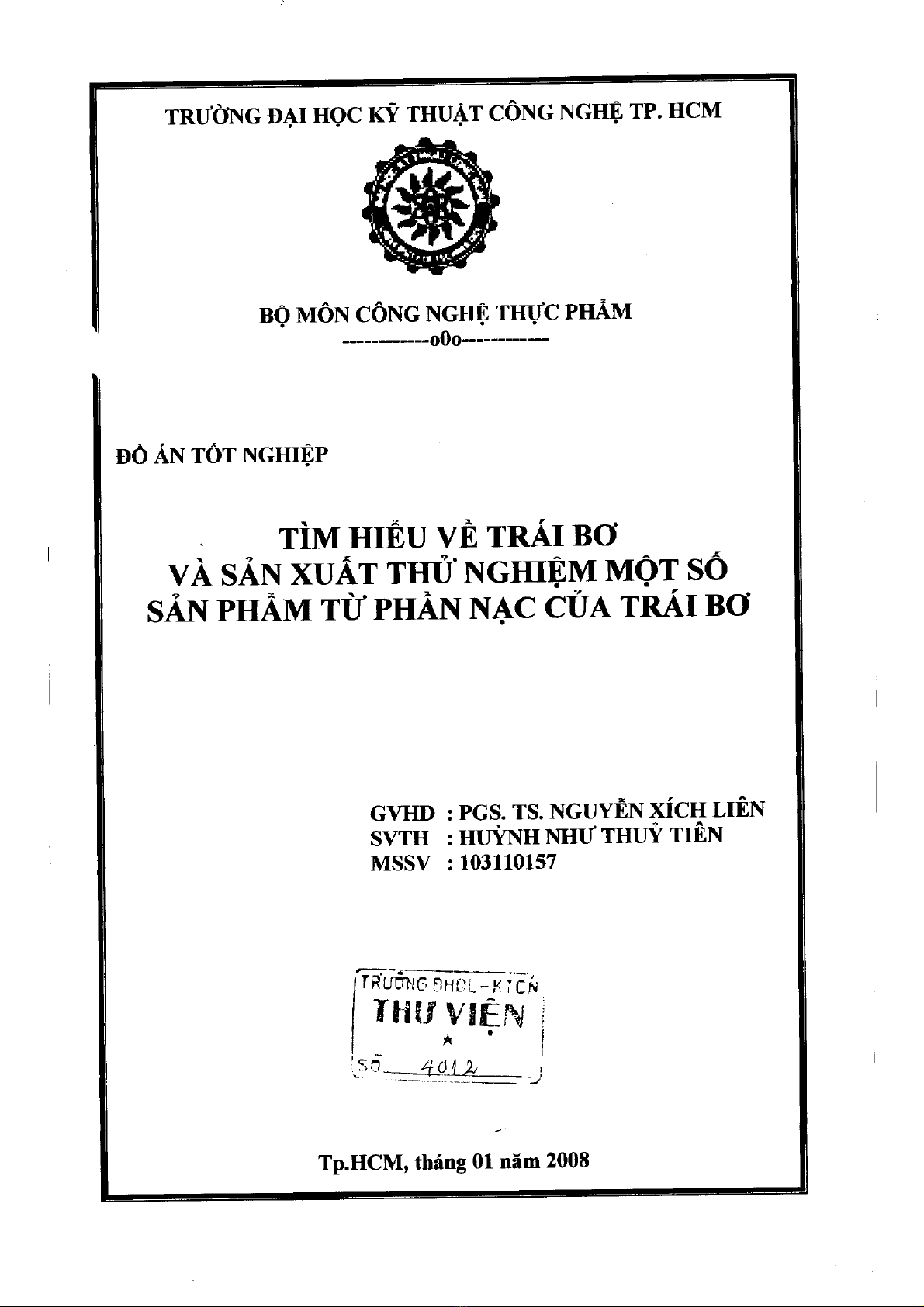 Đồ án tốt nghiệp: Tìm hiểu về trái bơ và sản xuất thử nghiệm một số sản phẩm từ phần nạc của bơ