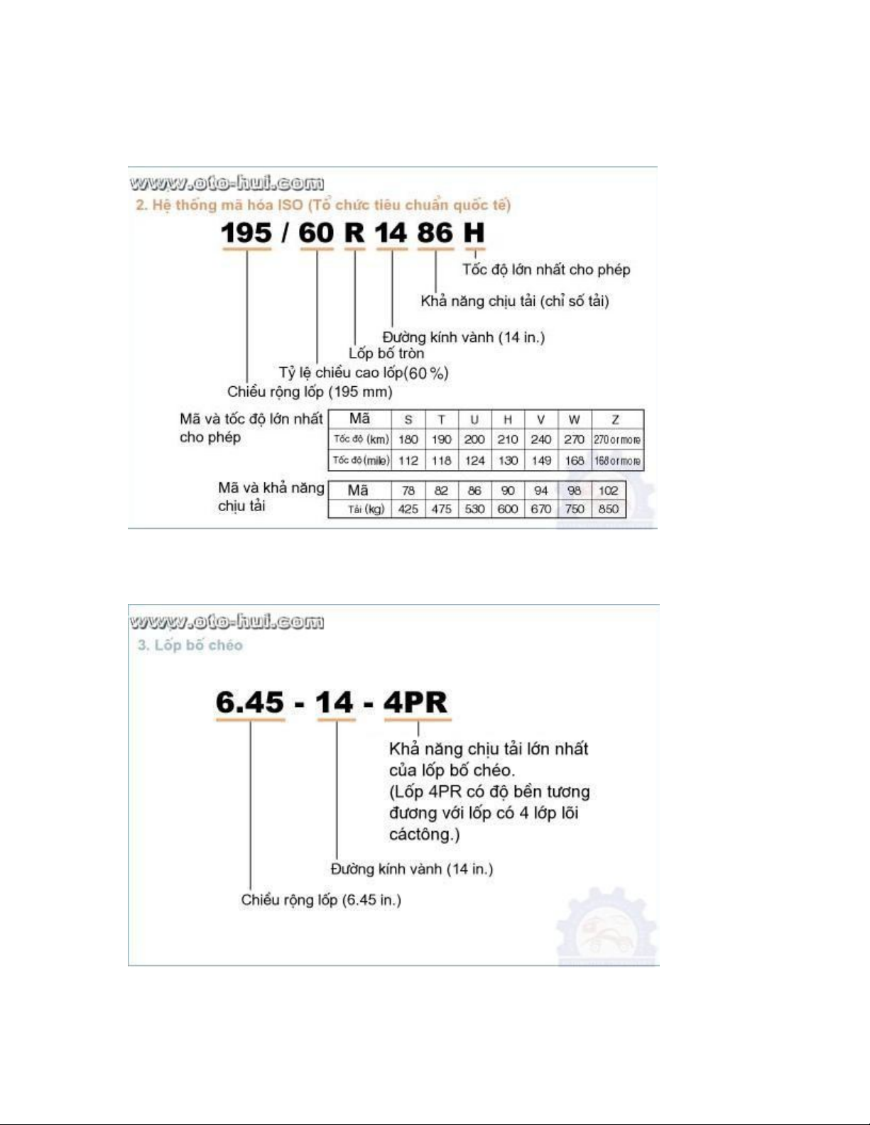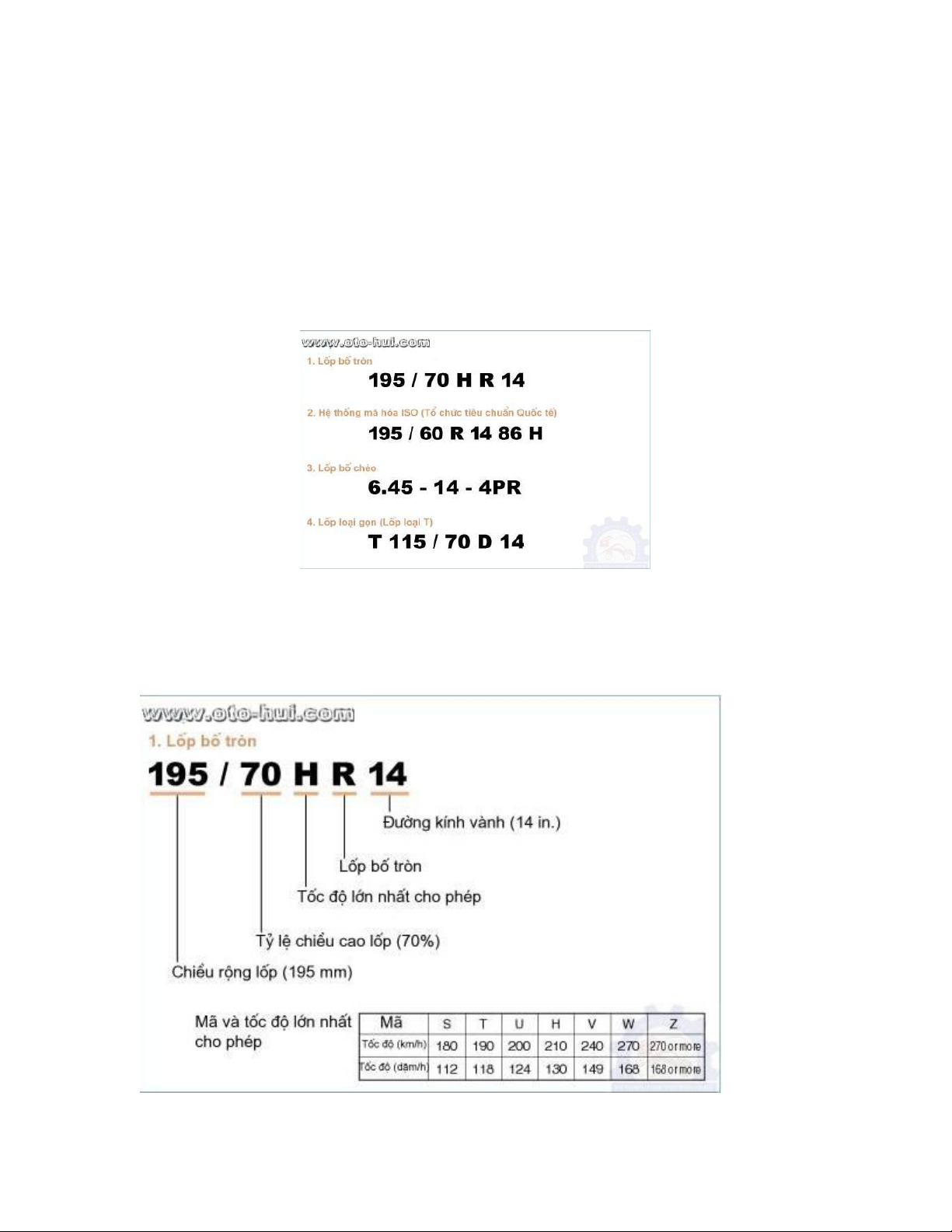 Chúng ta cùng tìm hiểu cách đọc các thông số trên lốp ô tô qua những hình ảnh dưới đây Lốp bố tròn Hệ thống mã hoá ISO (tổ chức tiêu chuẩn quốc tế) Lốp bố chéo Lốp loại gọn (lốp loại T)