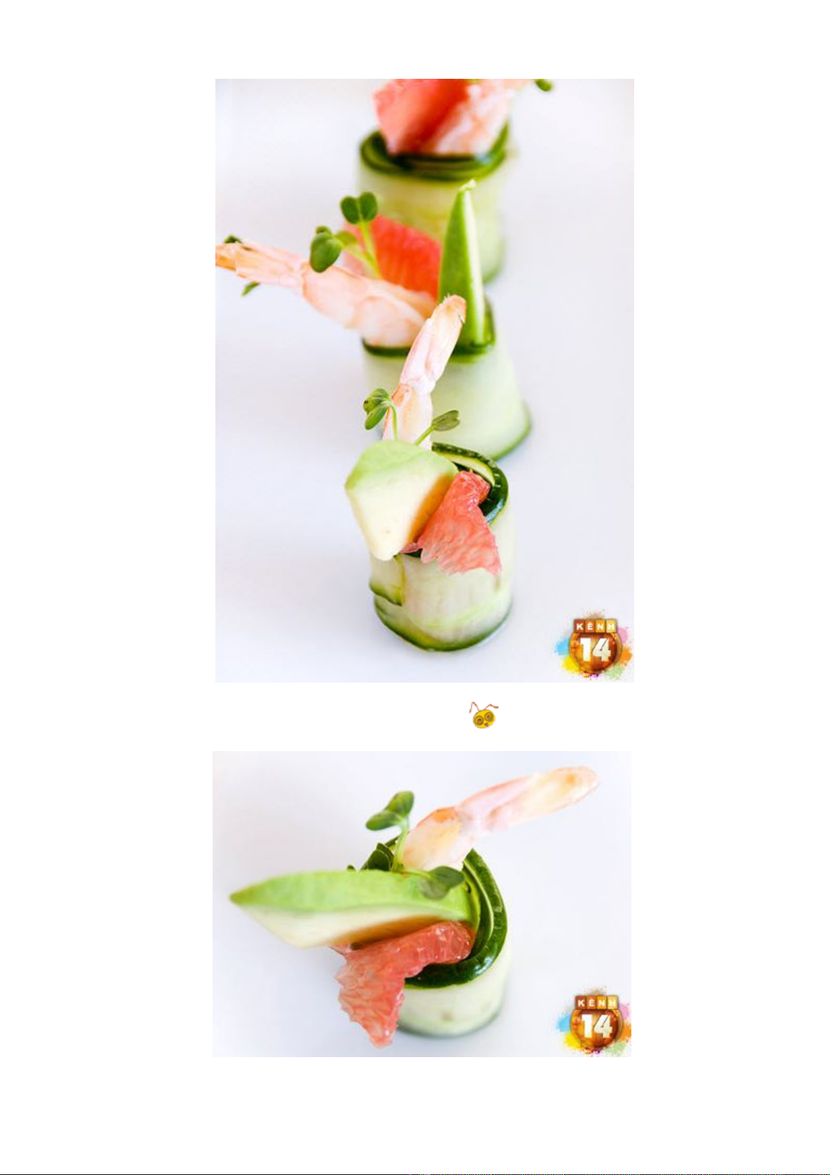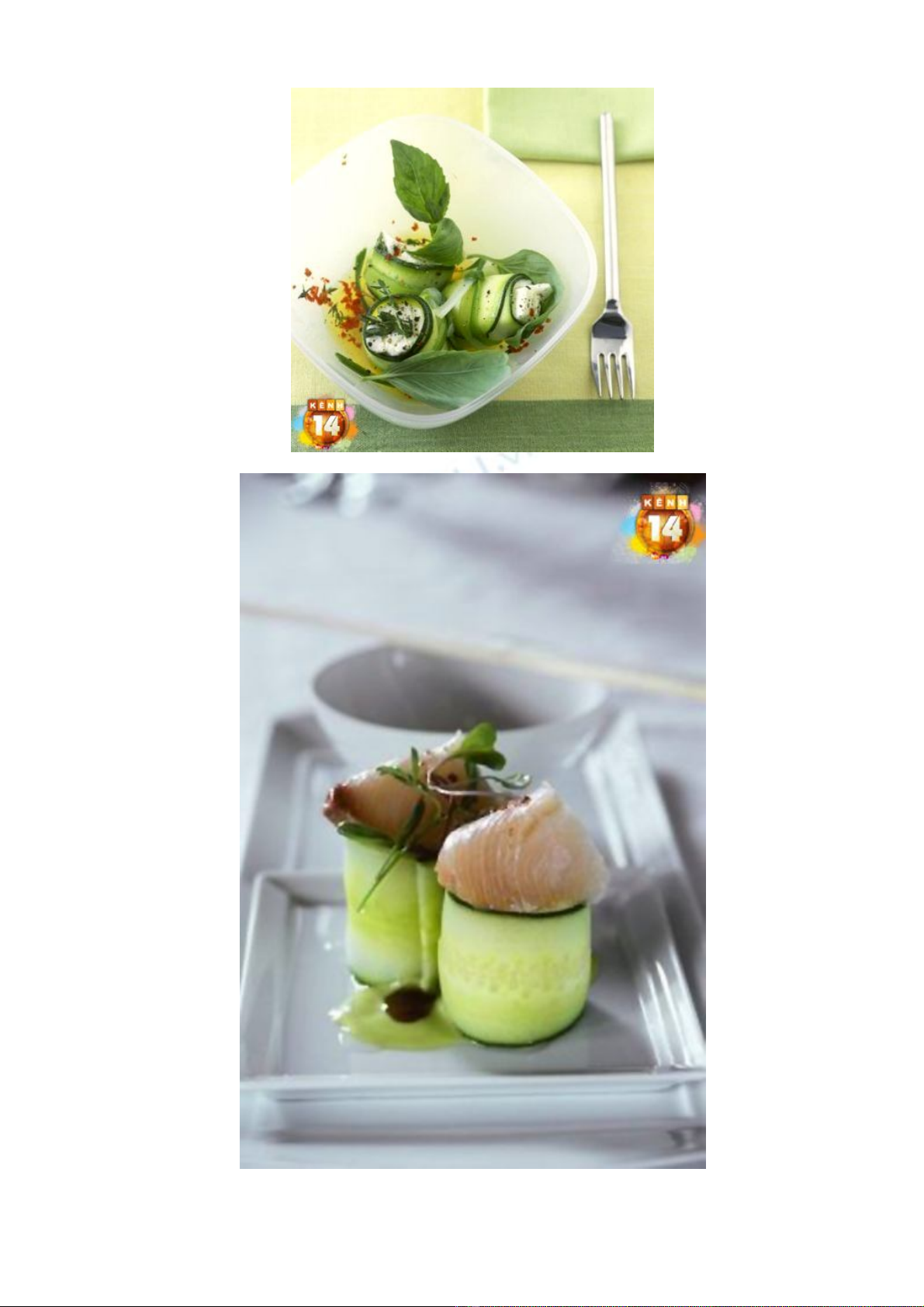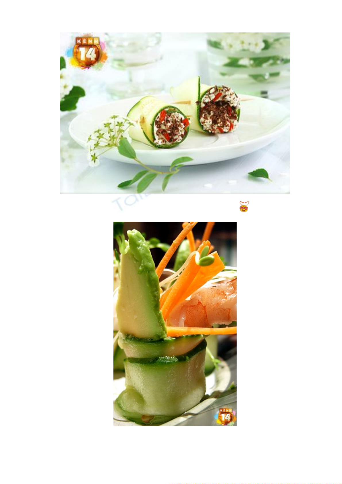 - Giờ thì xếp tất cả lên miếng dưa leo rùi