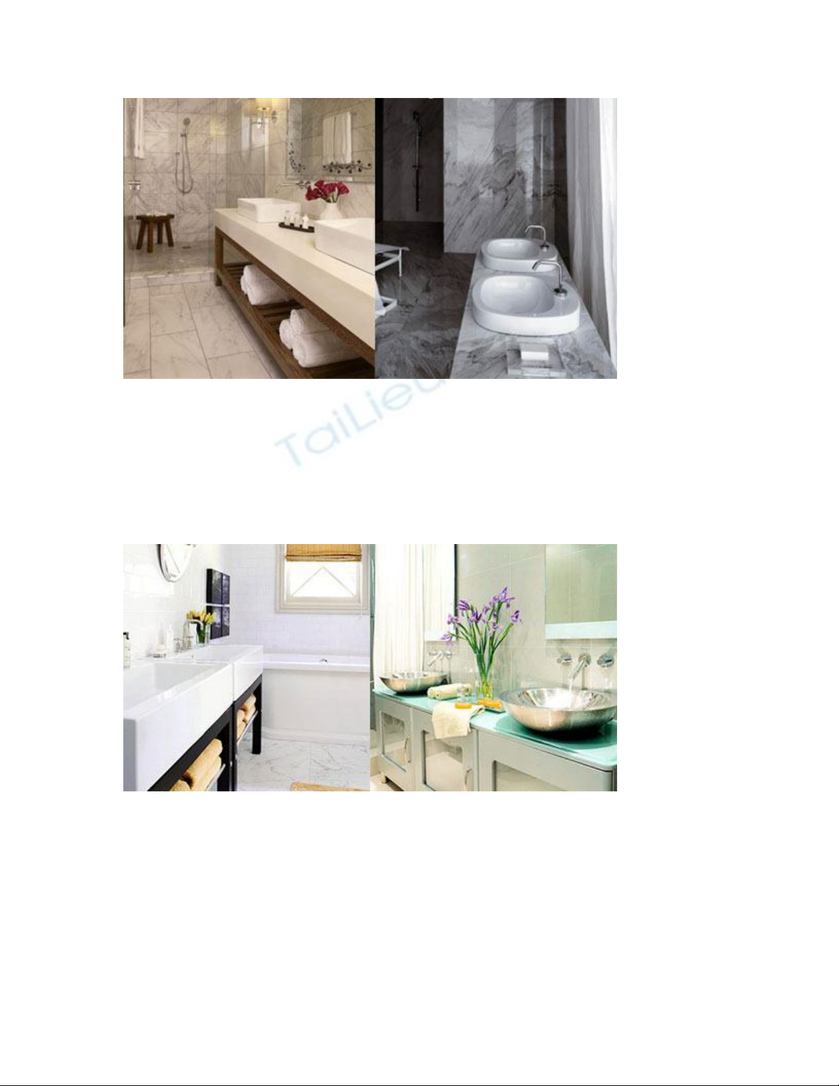 chậu rửa, bồn tắm nên để so le hoặc sử dụng những loại bồn dẹt, dài tiện lợi cho