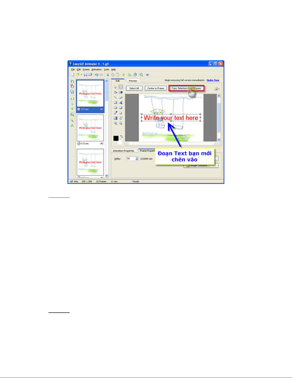 nút Copy Selected to All Frames. Lúc đó đoạn Text sẽ được Copy vào tất