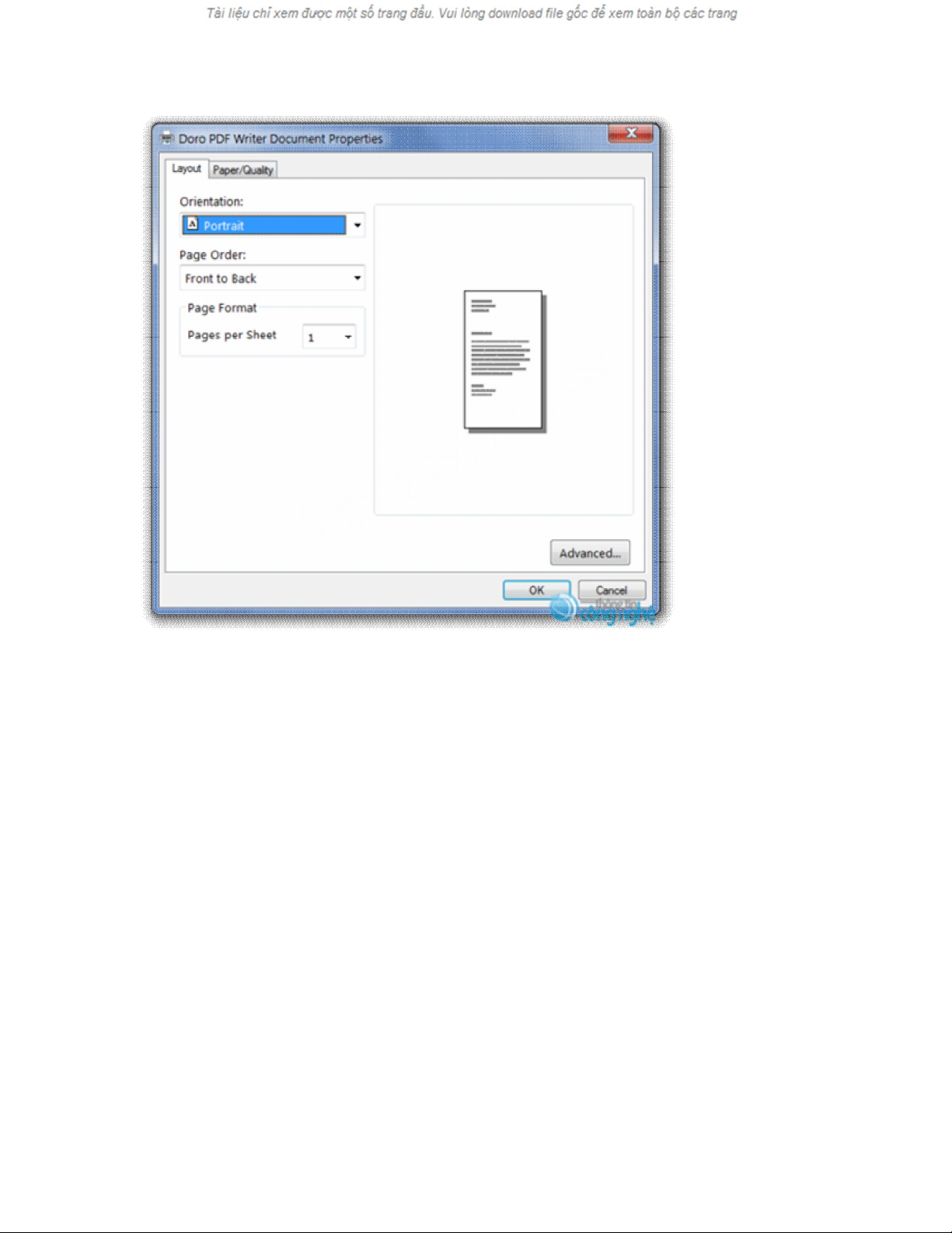 Properties. Từ đây bạn có thể lựa chọn bố trí, font chữ, định dạng trang và