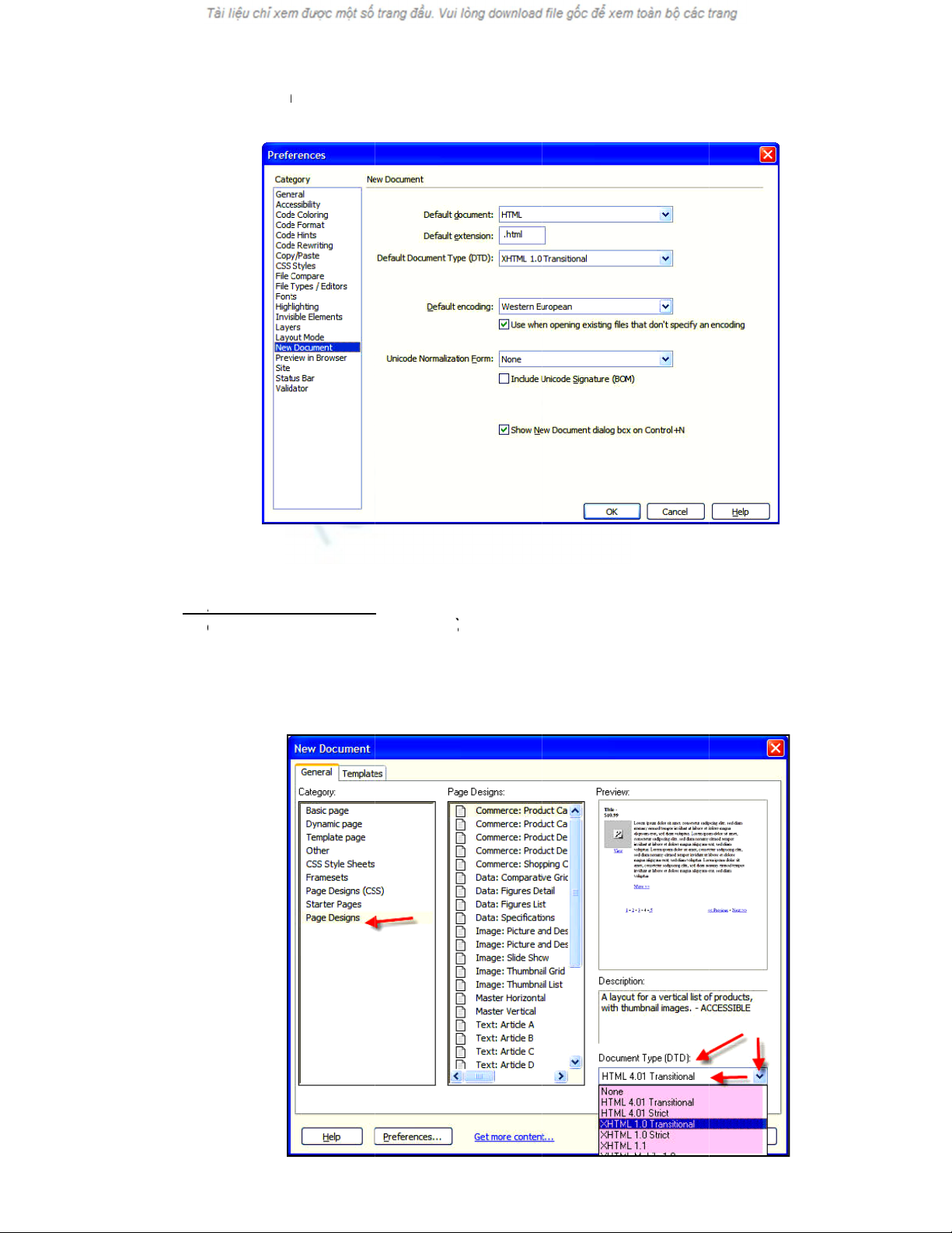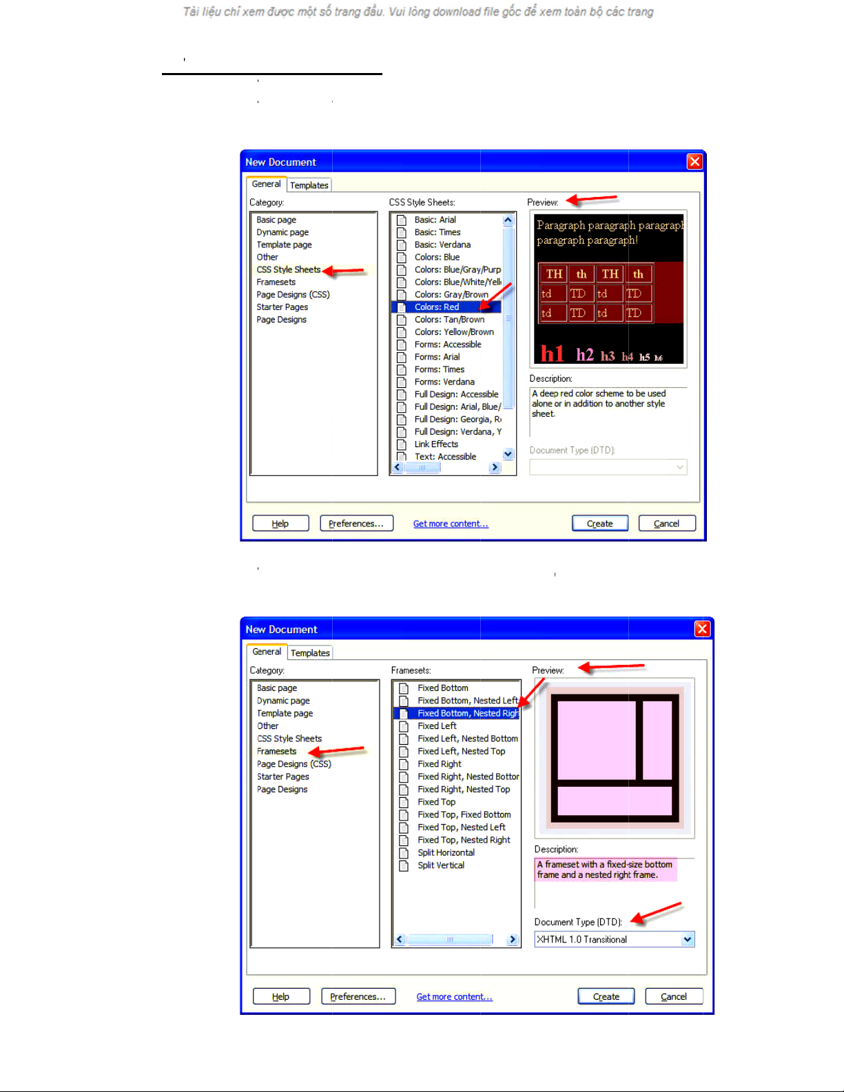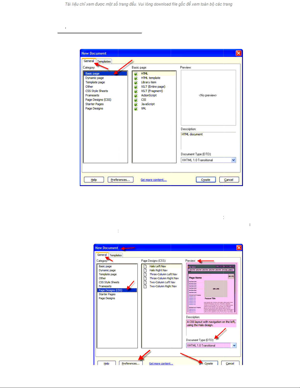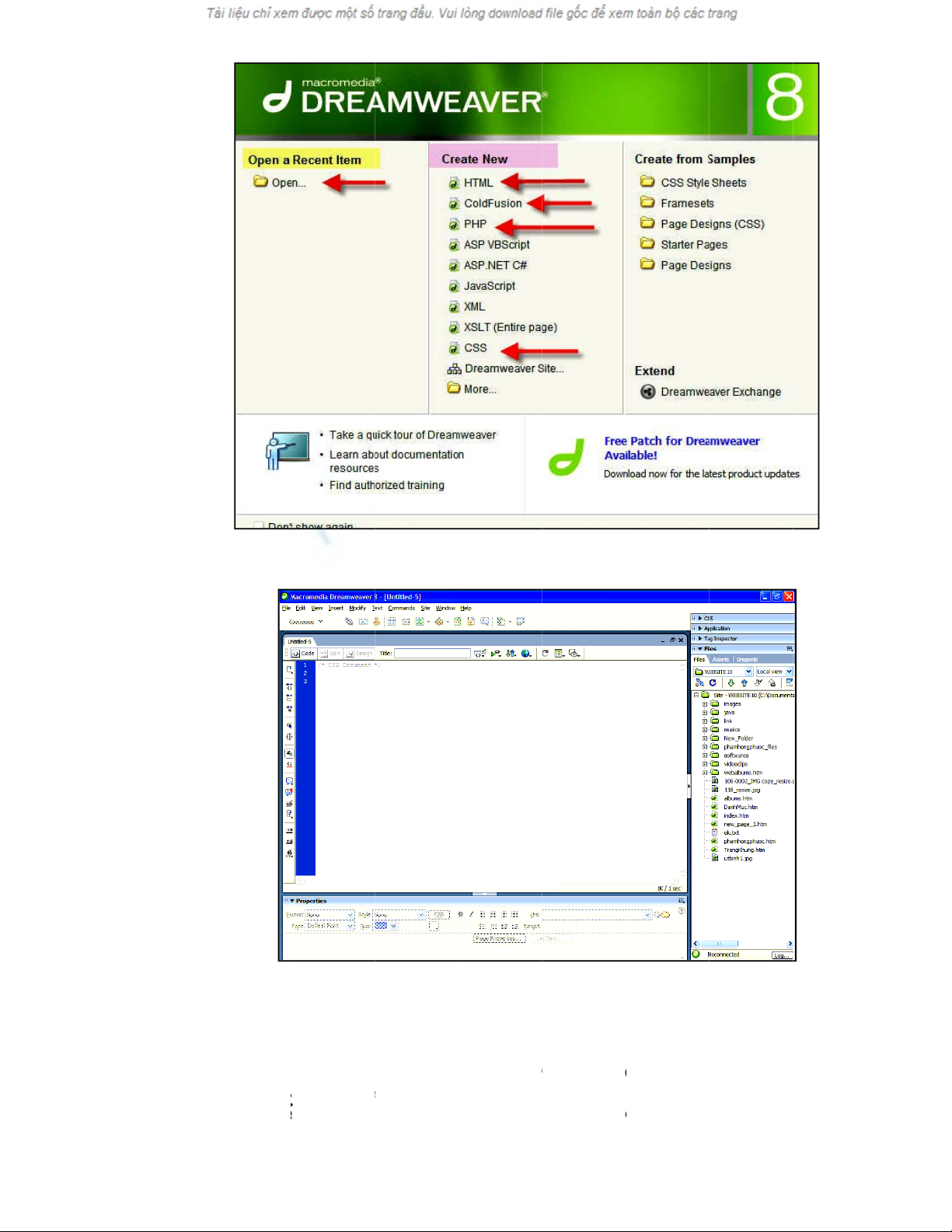 • Dreamweaver cung cấp các Trang Web Mẫu khác nhau . Có thể chọn các