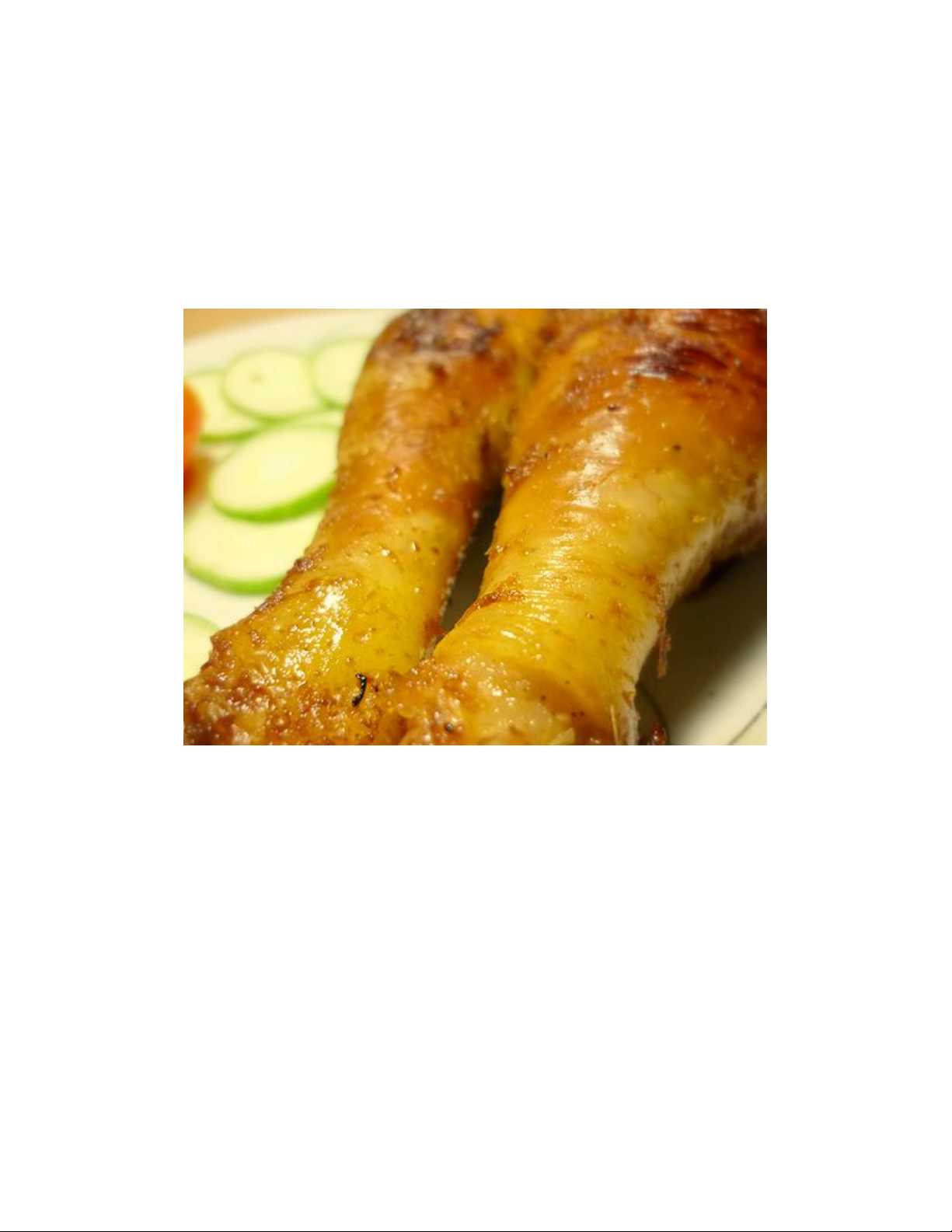 Nhúng đùi gà vào hỗn hợp đó rồi đem nướng vàng.