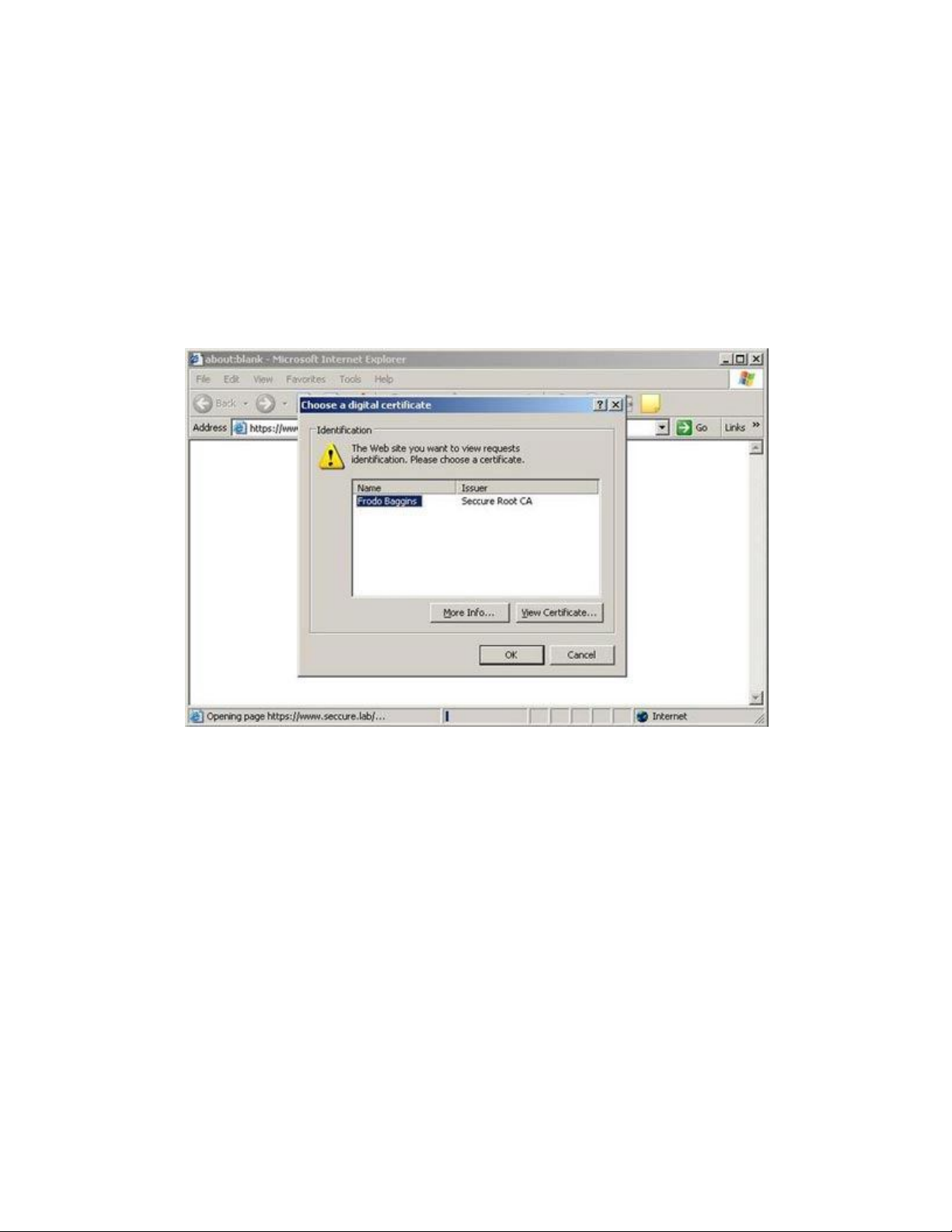(CN = “Frodo Baggins”) từ một công ty cụ thể (O=”Seccure”):