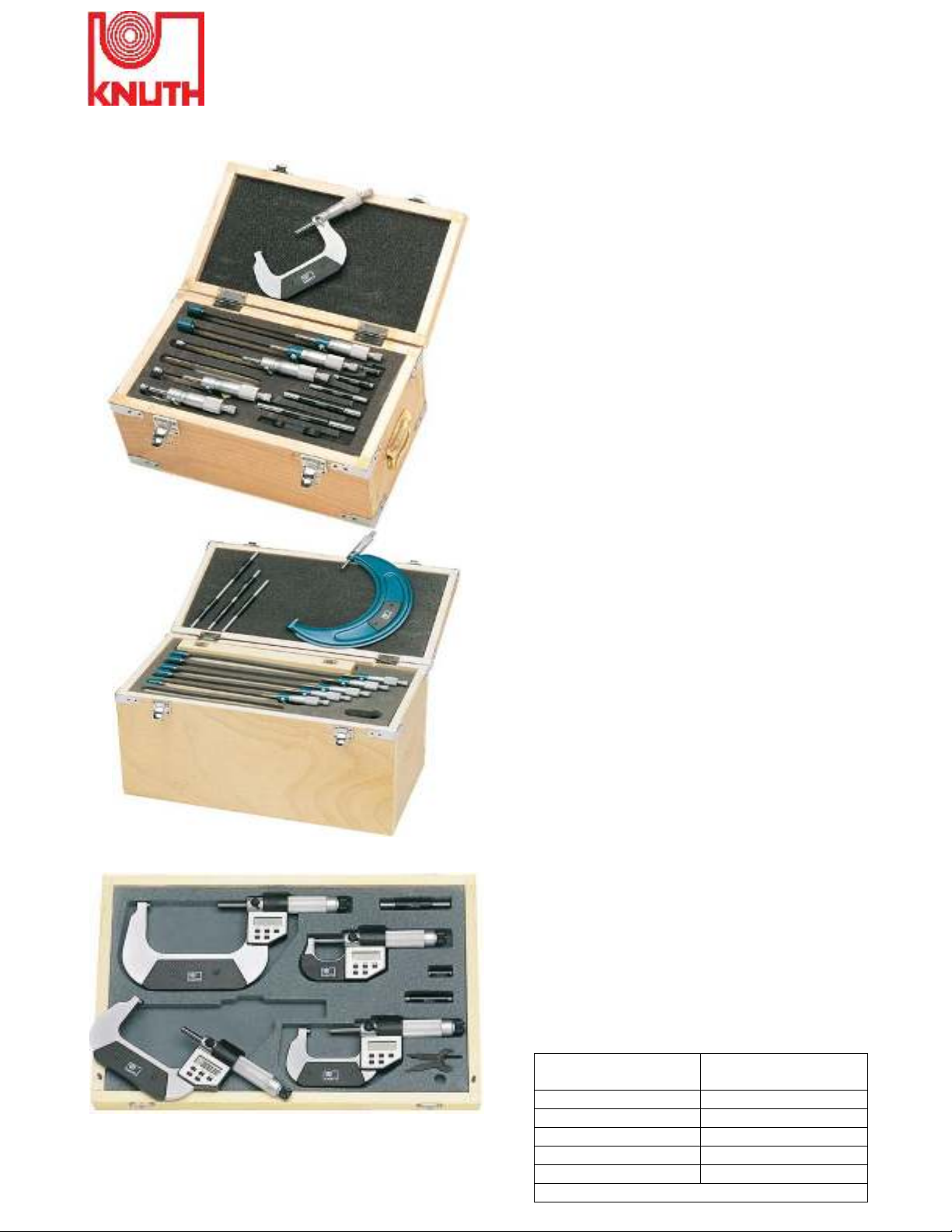 Phạm vi đo 0-25mm; 25-50mm; 50-75mm; 75-100mm; 100-
