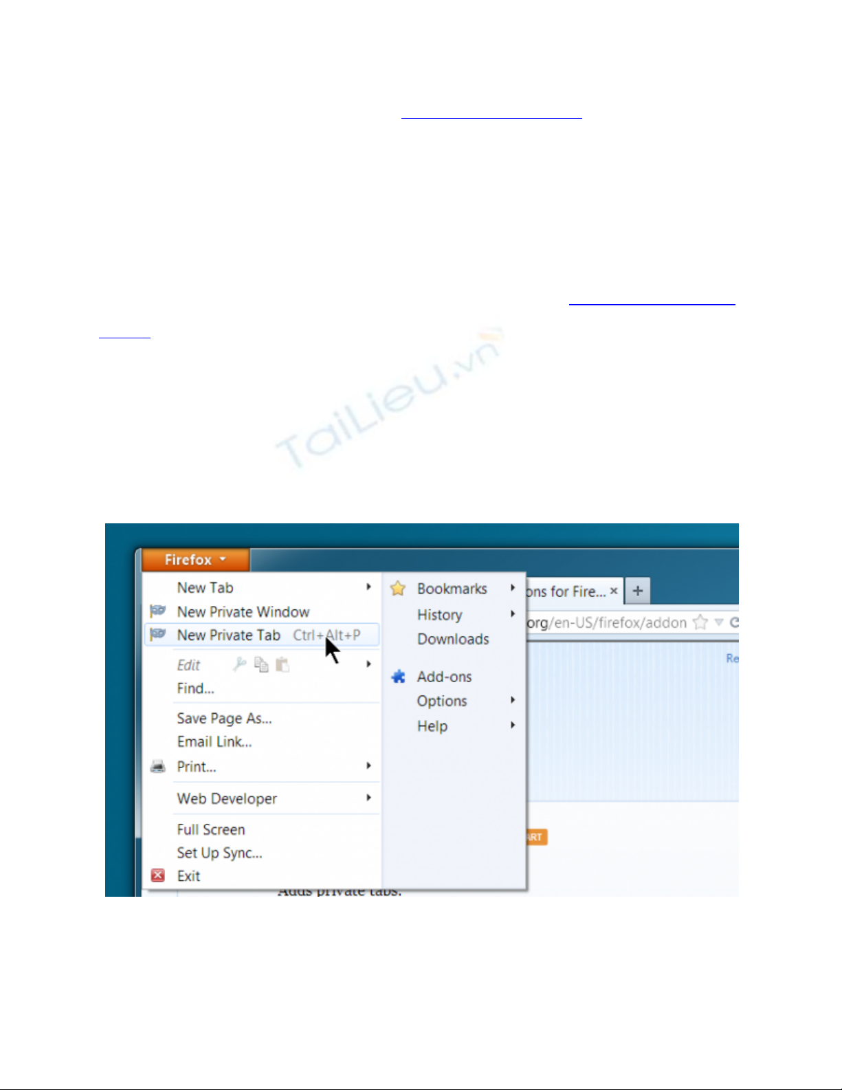 Sau khi download và cài đặt Private Tab, menu của Firefox sẽ hiện thêm tùy chọn
