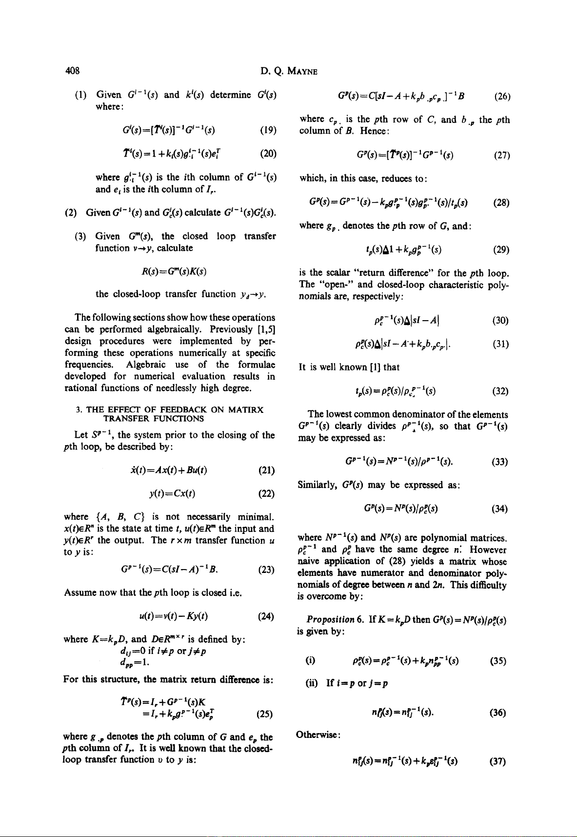 feedback on a matrix transfer function, can be performed