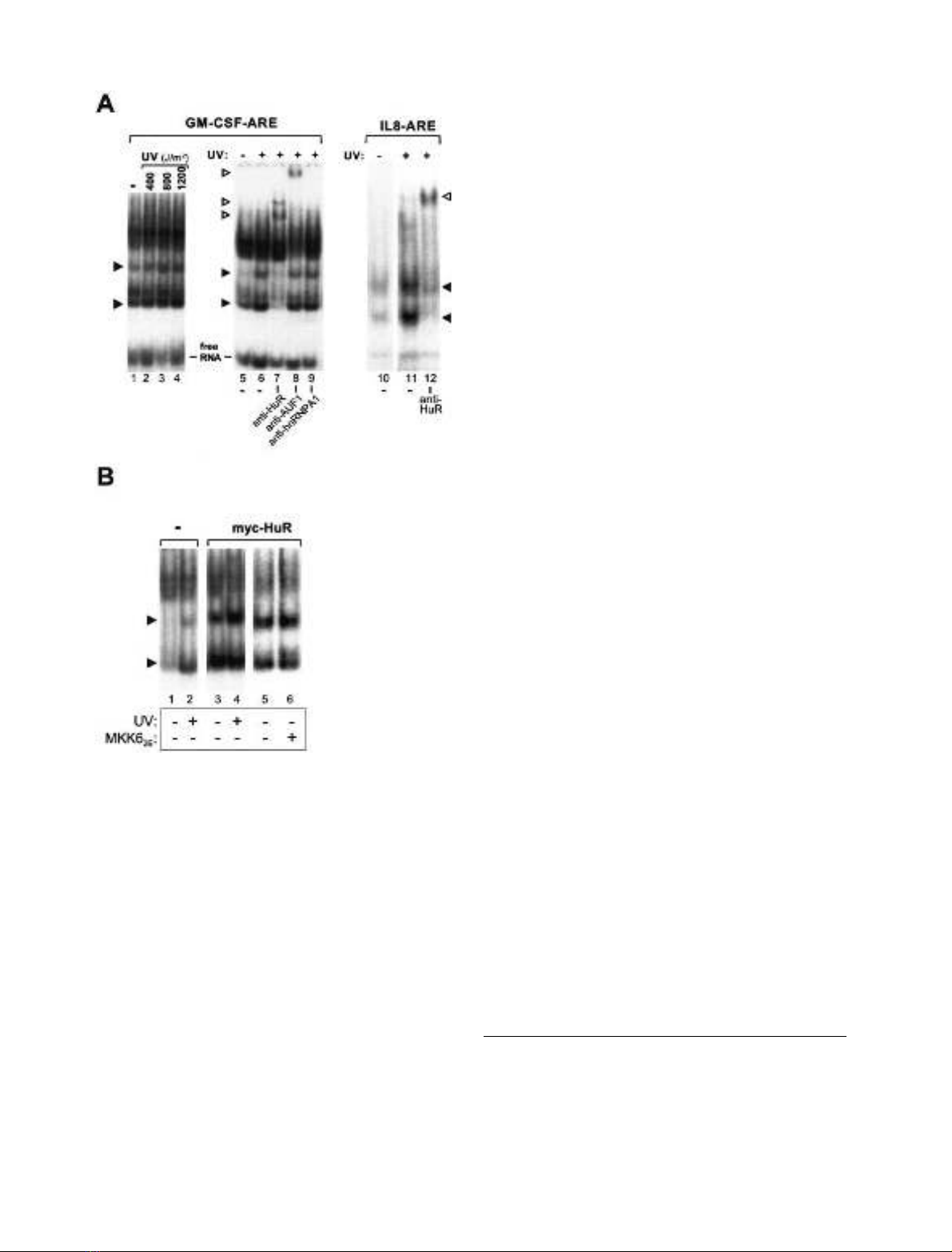 with labeled GM-CSF ARE RNA was assayed as described in (A).