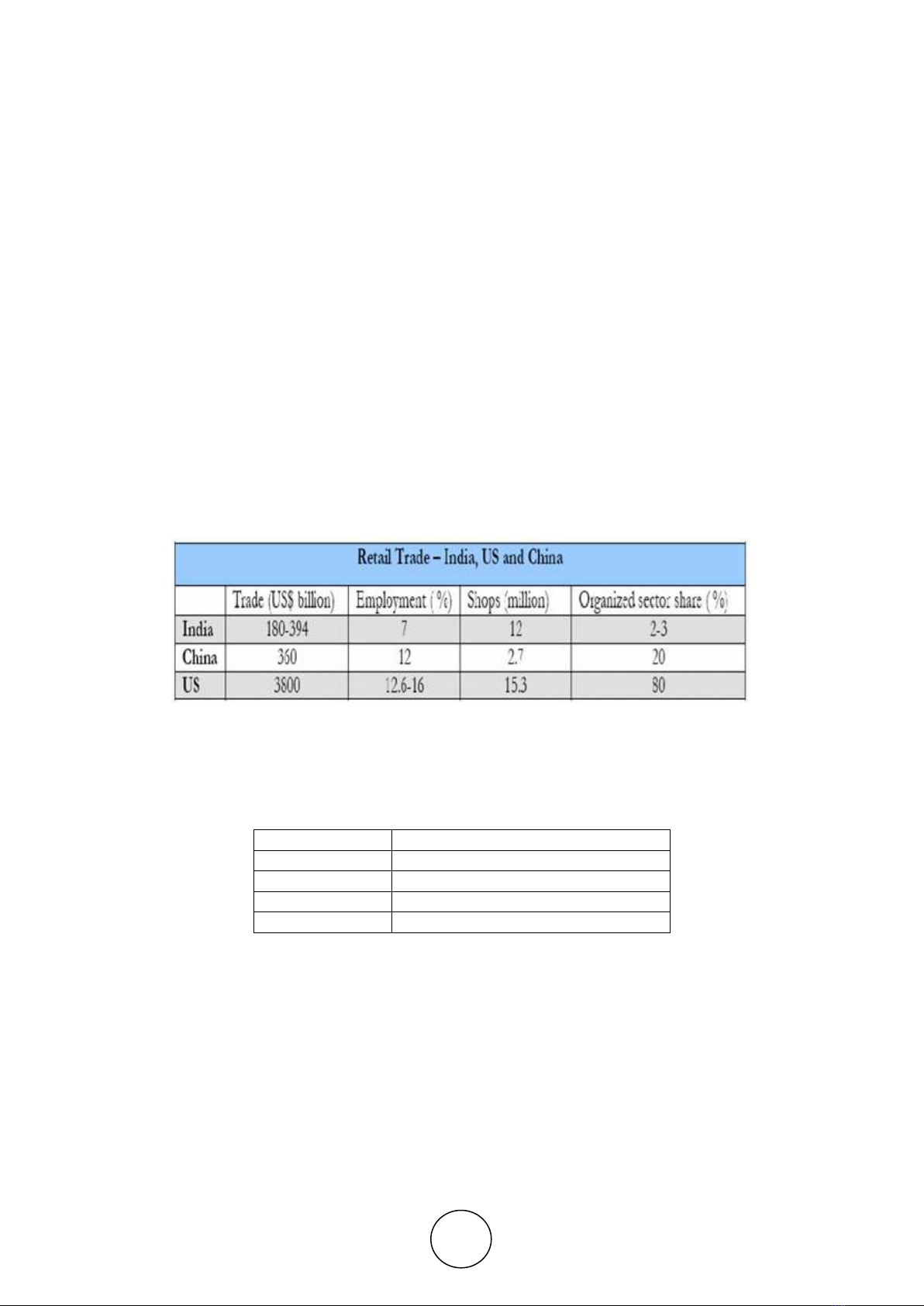 direct and indirect employment related to the retail sector. Table 1 gives the picture of India‟s