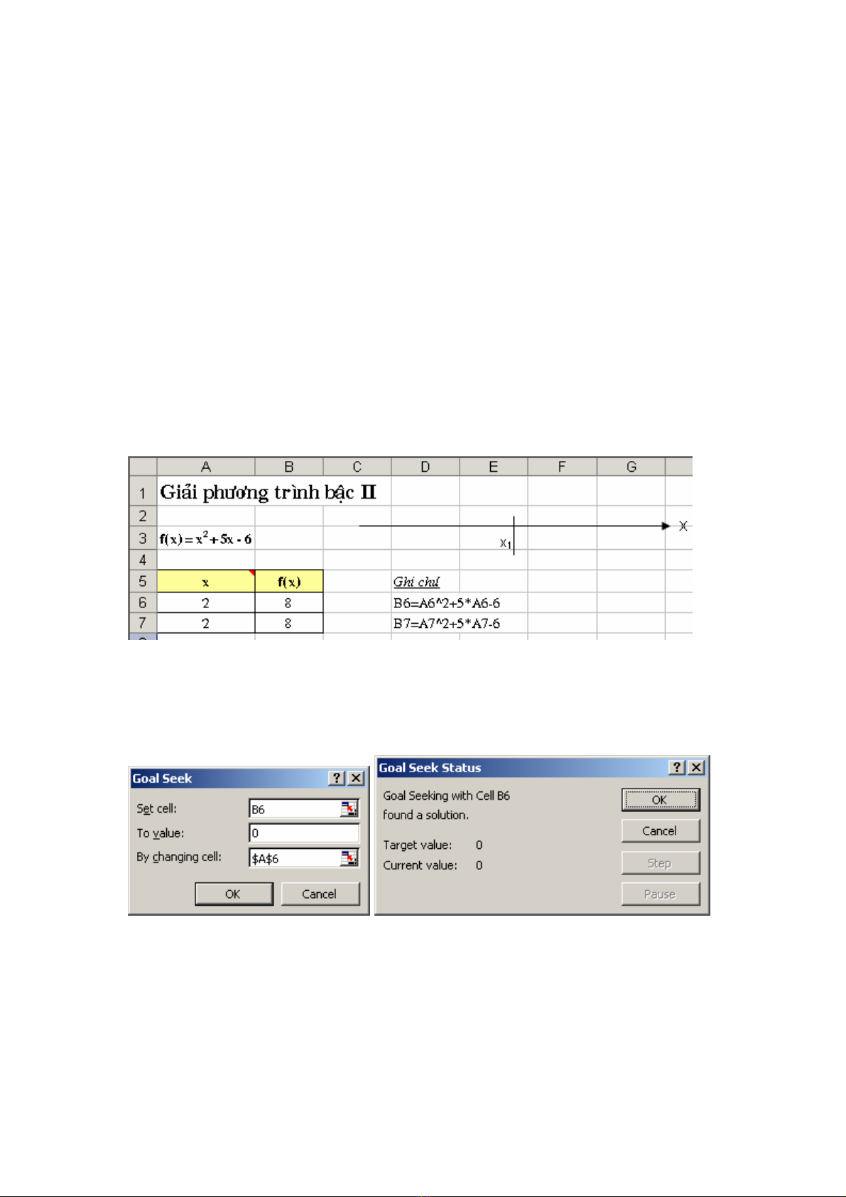 Hình 5.2. Khai baùo cho Goal Seek tìm nghieäm thöù nhaát x1