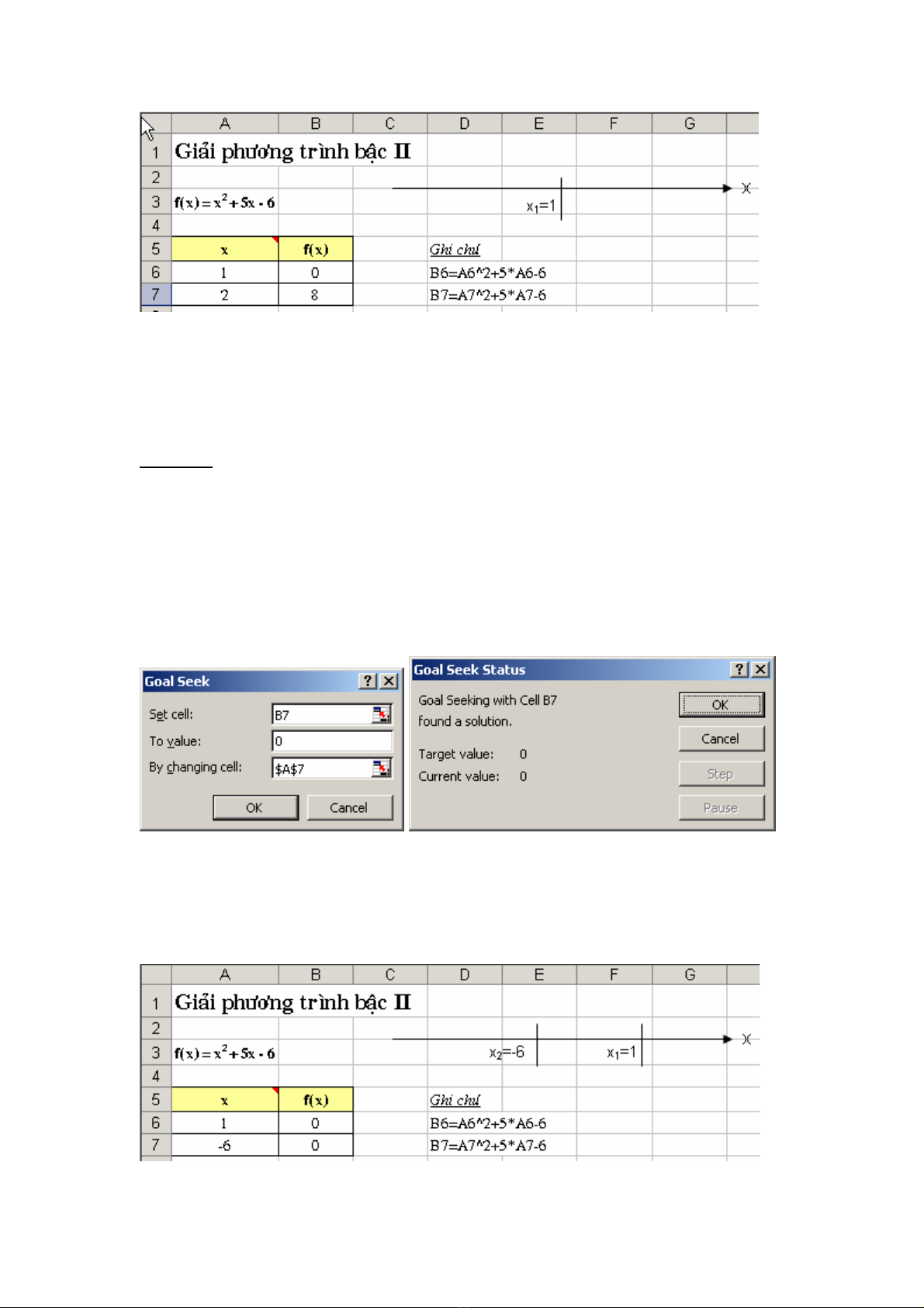 Hình 5.3. Keát quaû chaïy Goal Seek laàn thöù nhaát vaø tìm ñöôïc nghieäm x1=1
