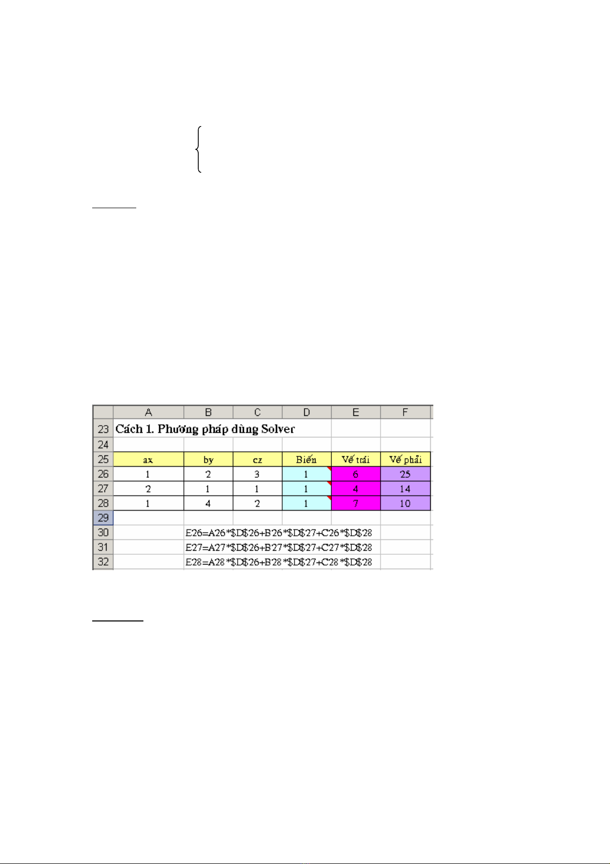 Caùch 1. Giaûi heä phöông trình duøng Solver