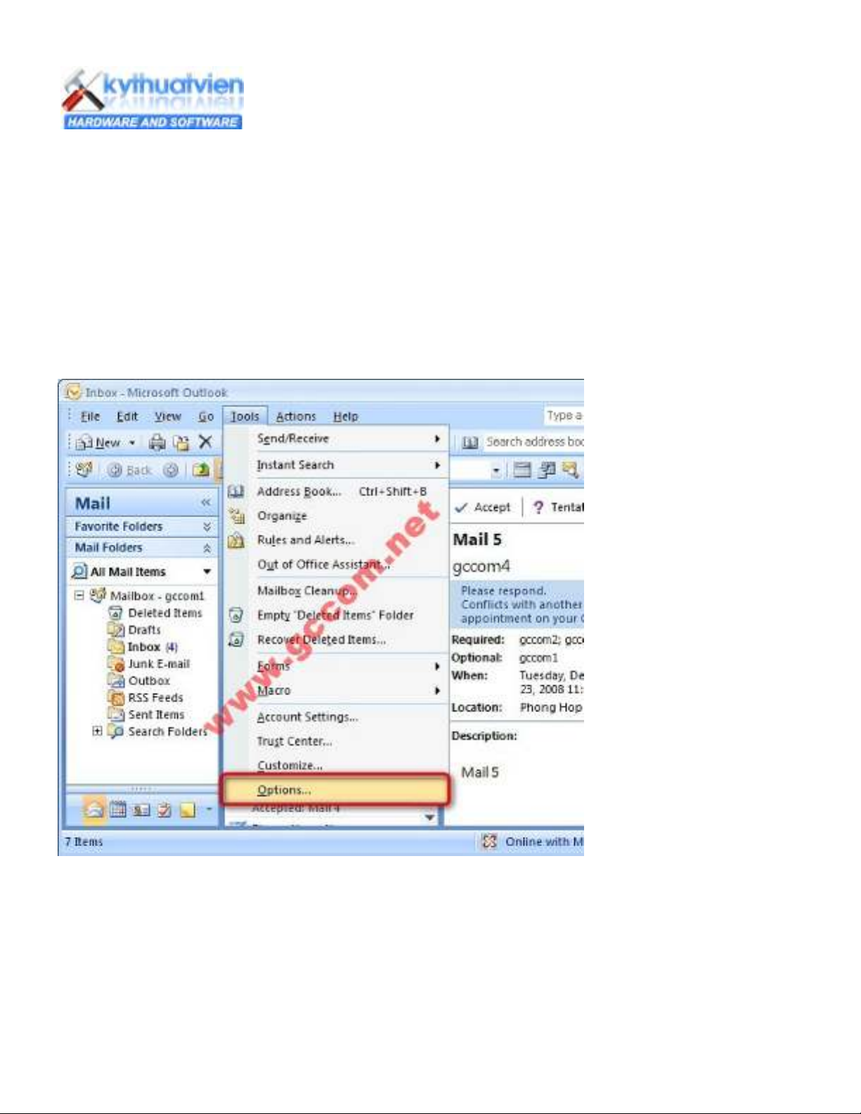 Trong m àn hình MOO của g ccom 1 tôi chọn Tools - > Opt ions
