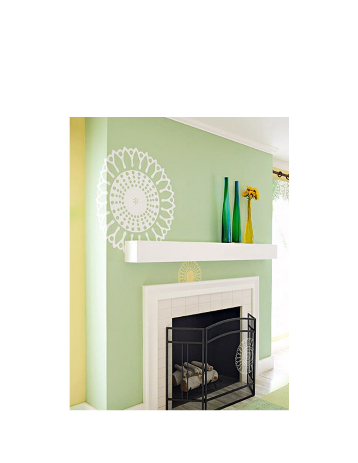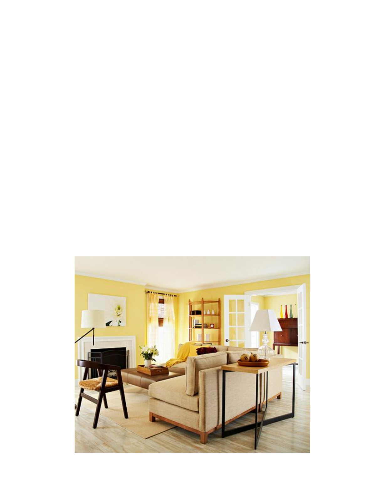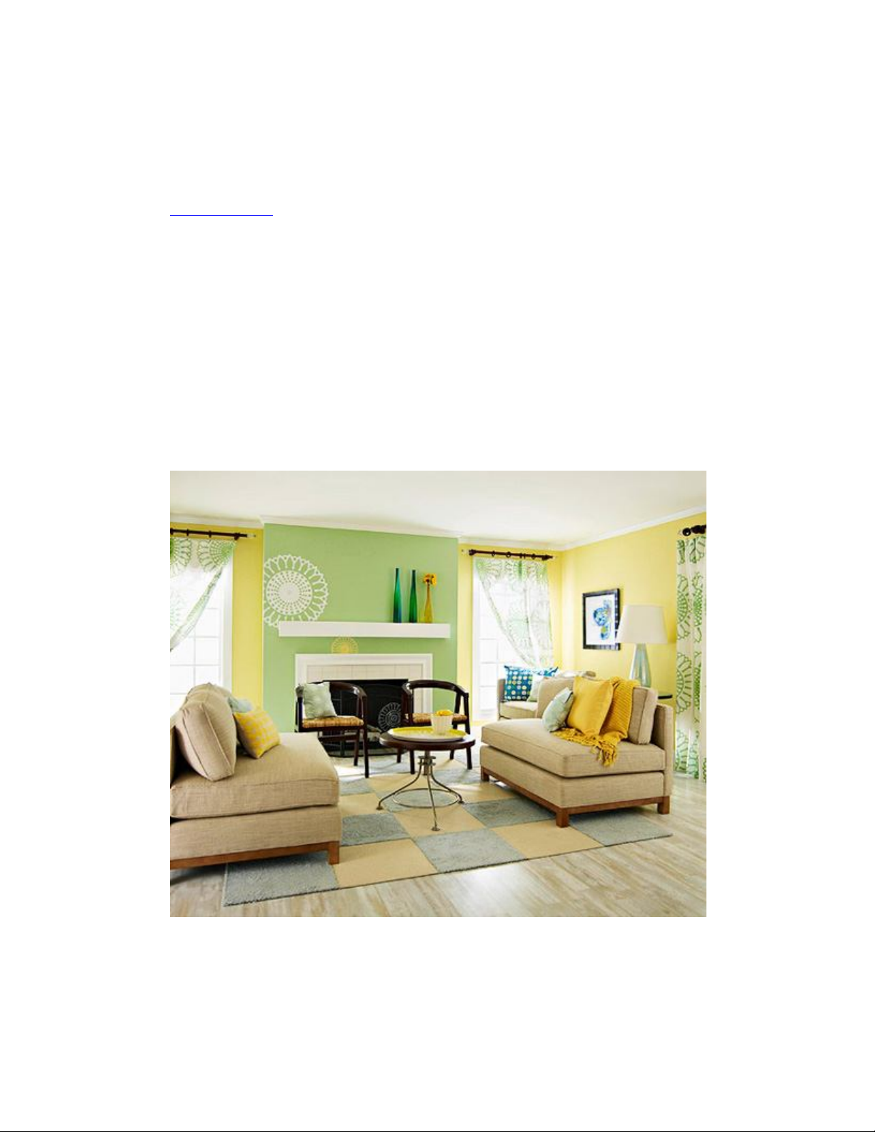 Màu vàng trước đó đã được xen kẽ thêm sắc xanh lá cho bức tường sinh động và lạ